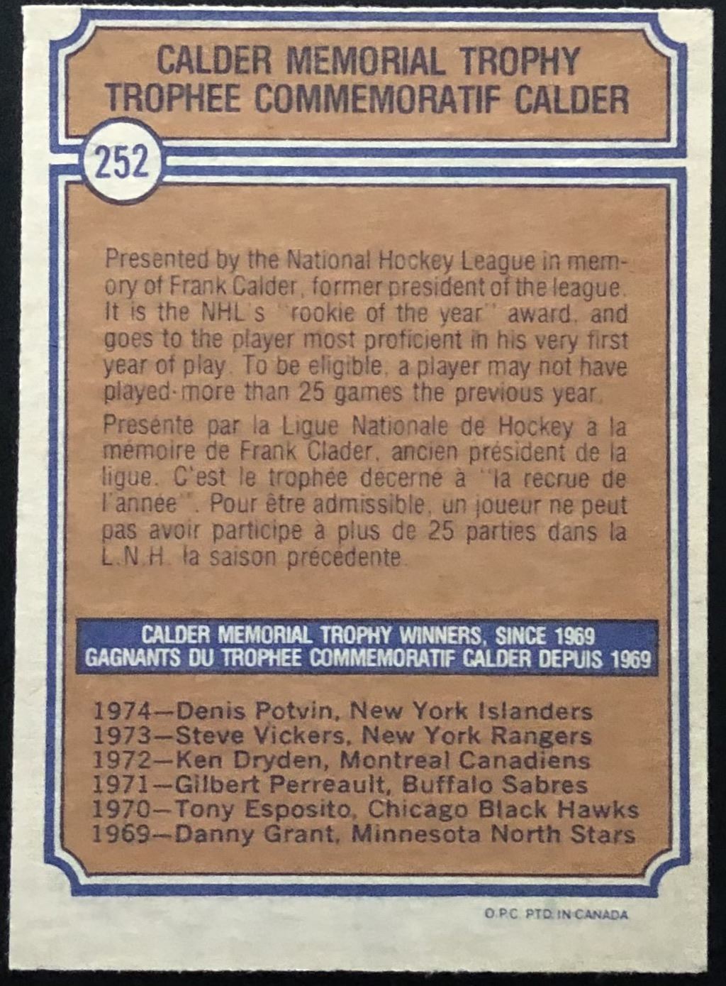 Card #252 NHL, hockey, vintage, OPC, hall of fame