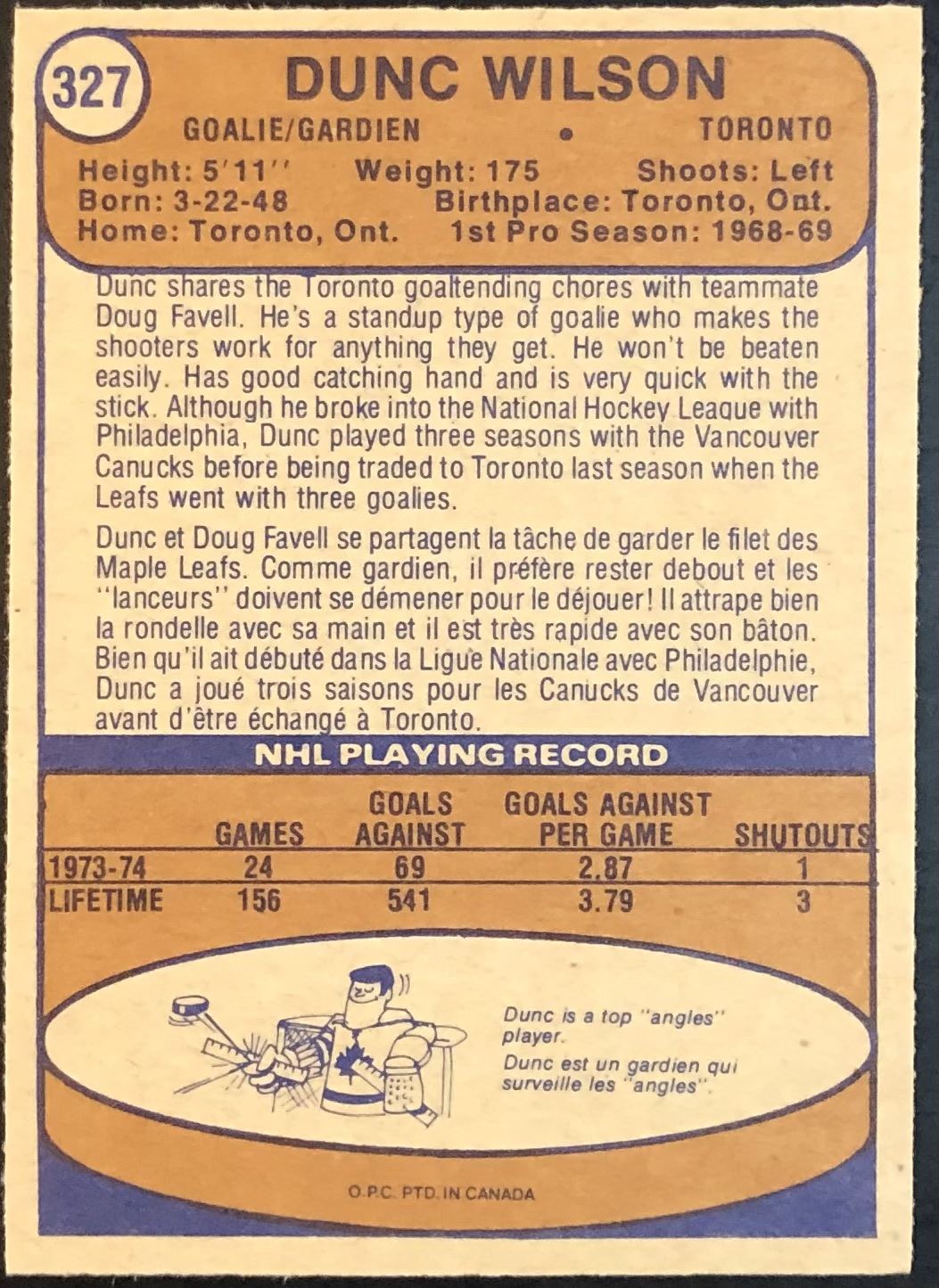 Card #327 NHL, hockey, vintage, OPC