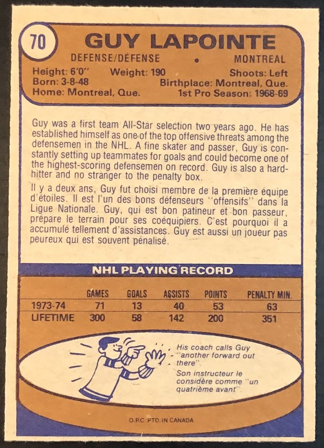 Card #70 NHL, hockey, vintage, OPC, hall of fame