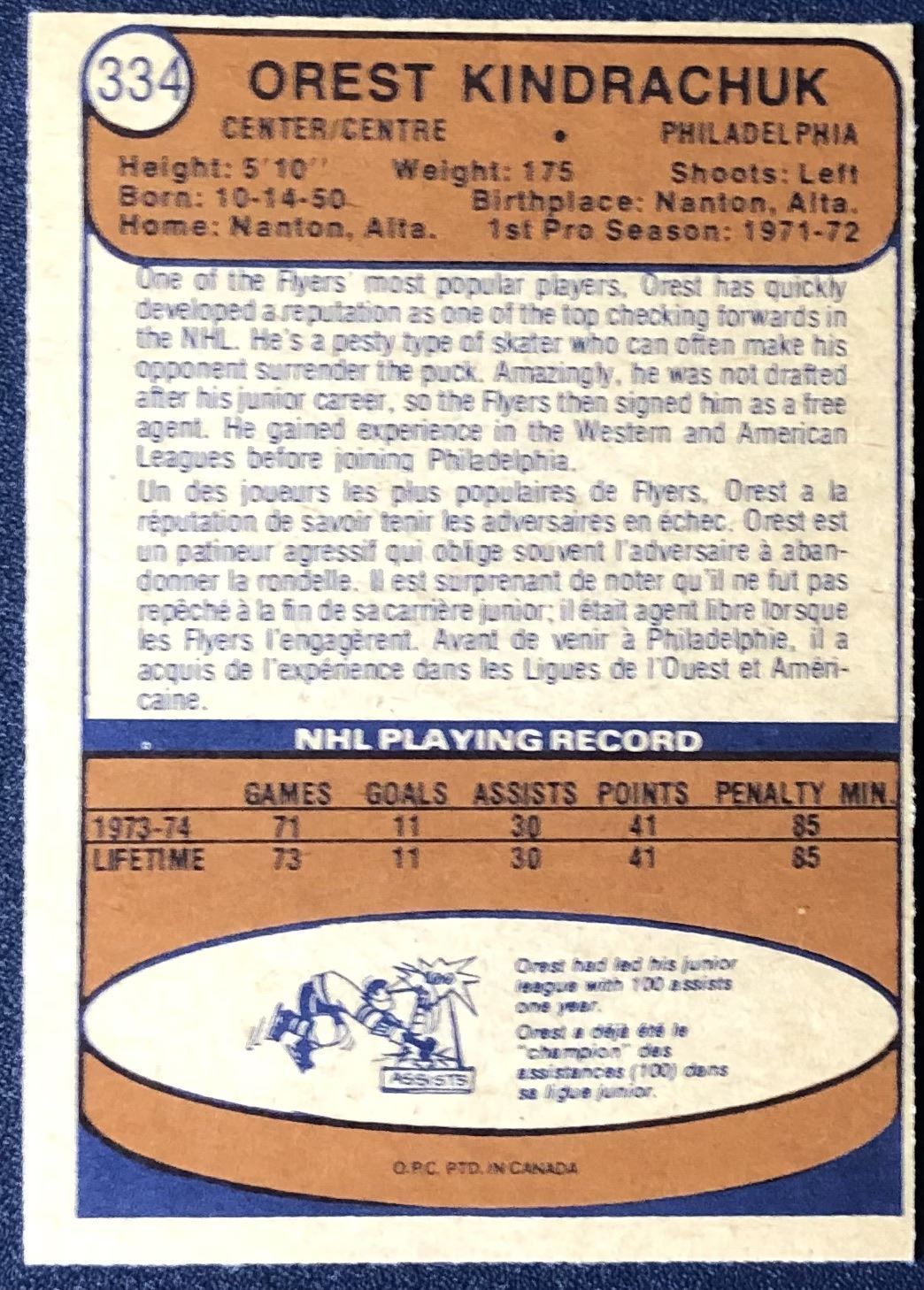 Card #334 NHL, hockey, vintage, OPC, rookie