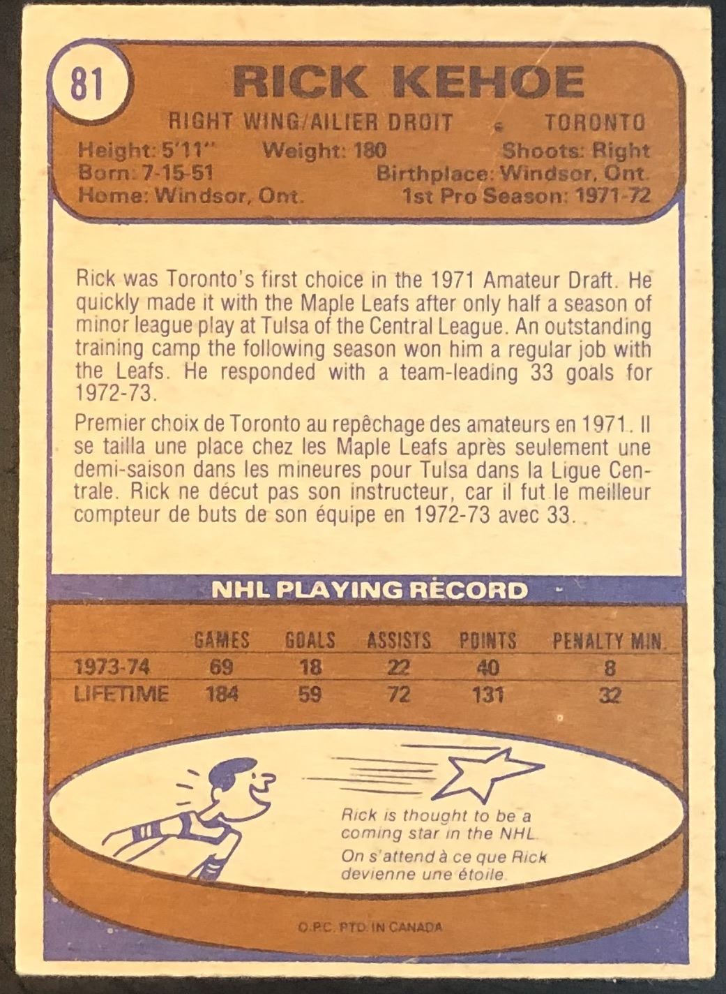 Card #81 NHL, hockey, OPC, vintage