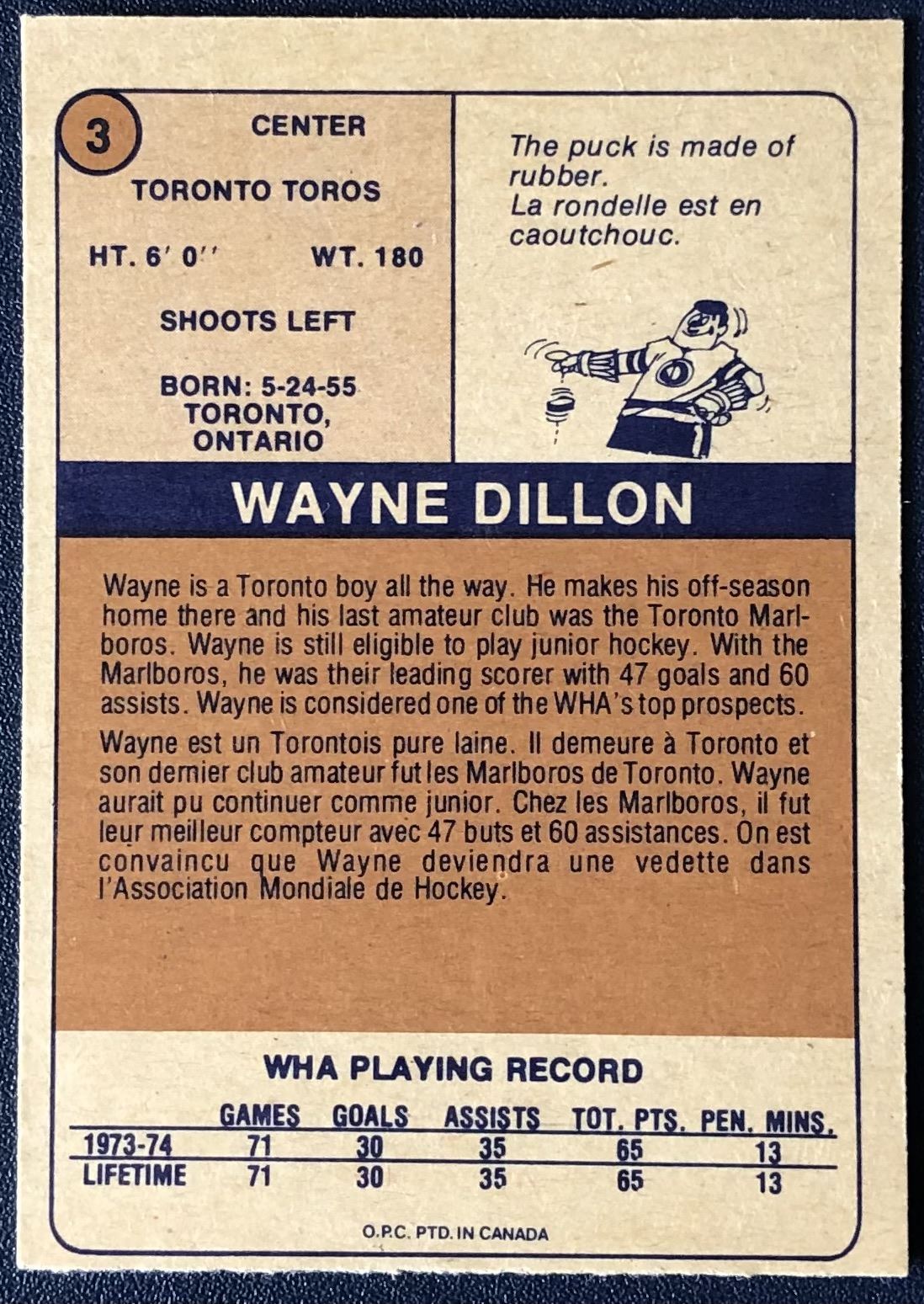 Card #3 vintage, hockey, WHA, OPC, rookie