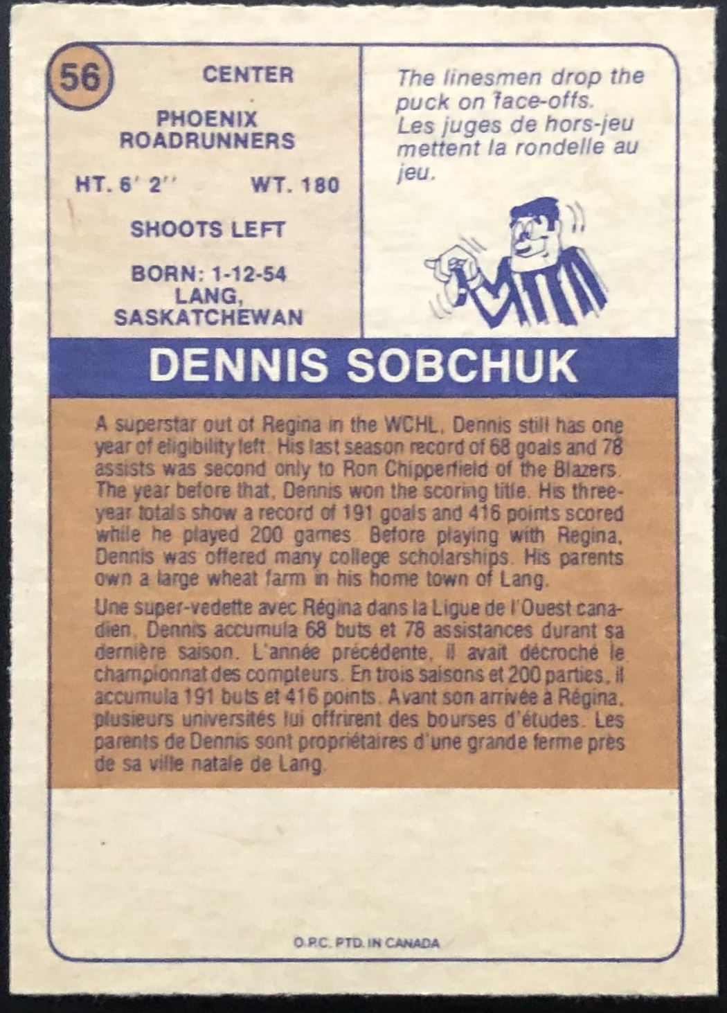 Card #56 WHA, hockey, OPC, vintage, rookie