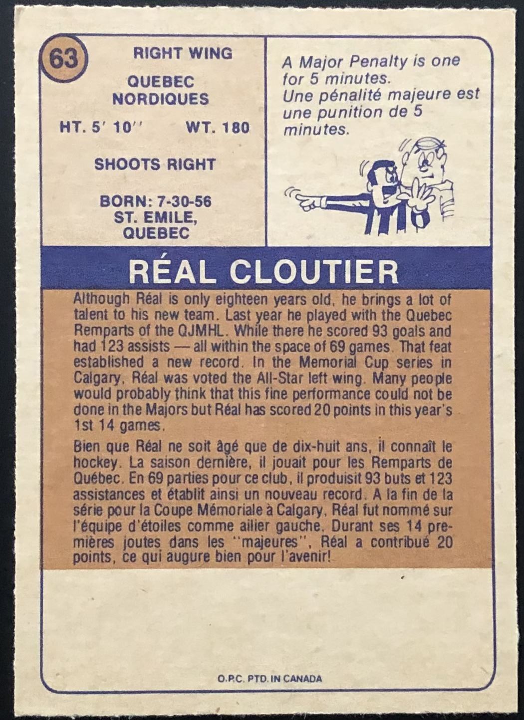 Card #63 WHA, hockey, OPC, vintage, rookie