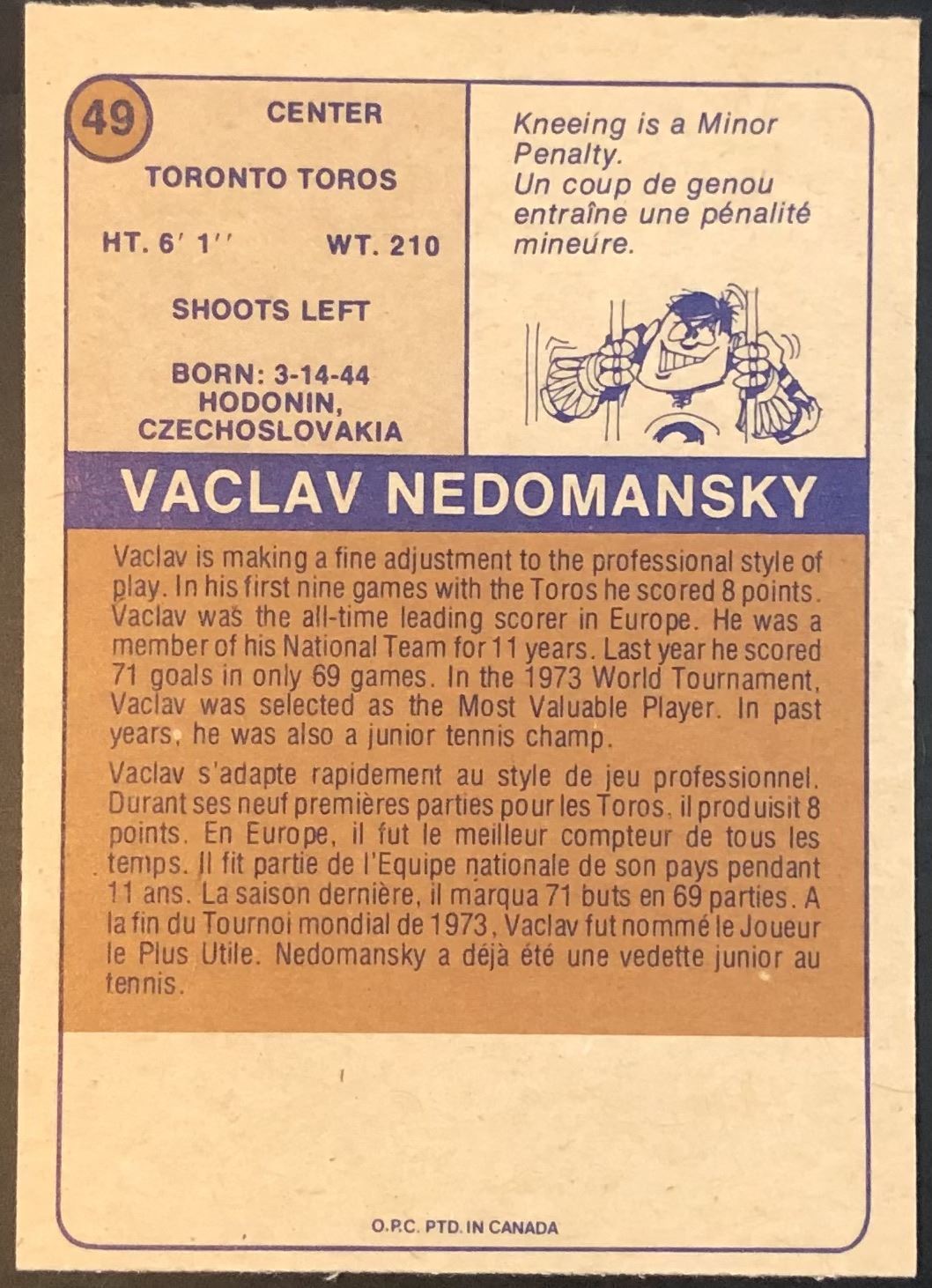 Card #49 WHA, hockey, vintage, OPC, hall of fame, rookie