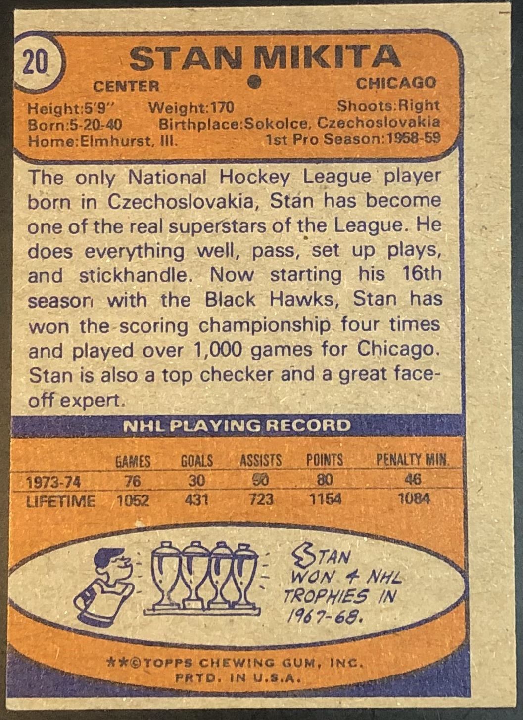 Card #20 NHL, hockey, vintage, hall of fame