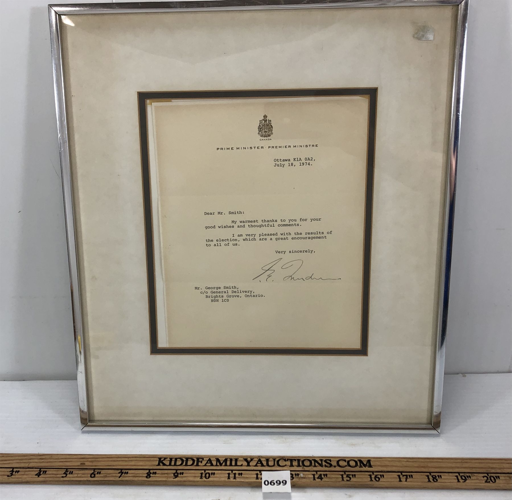 NOTE: ON OFFICIAL PRIME MINISTER LETTERHEAD - 14 X 16IN W/ FRAME