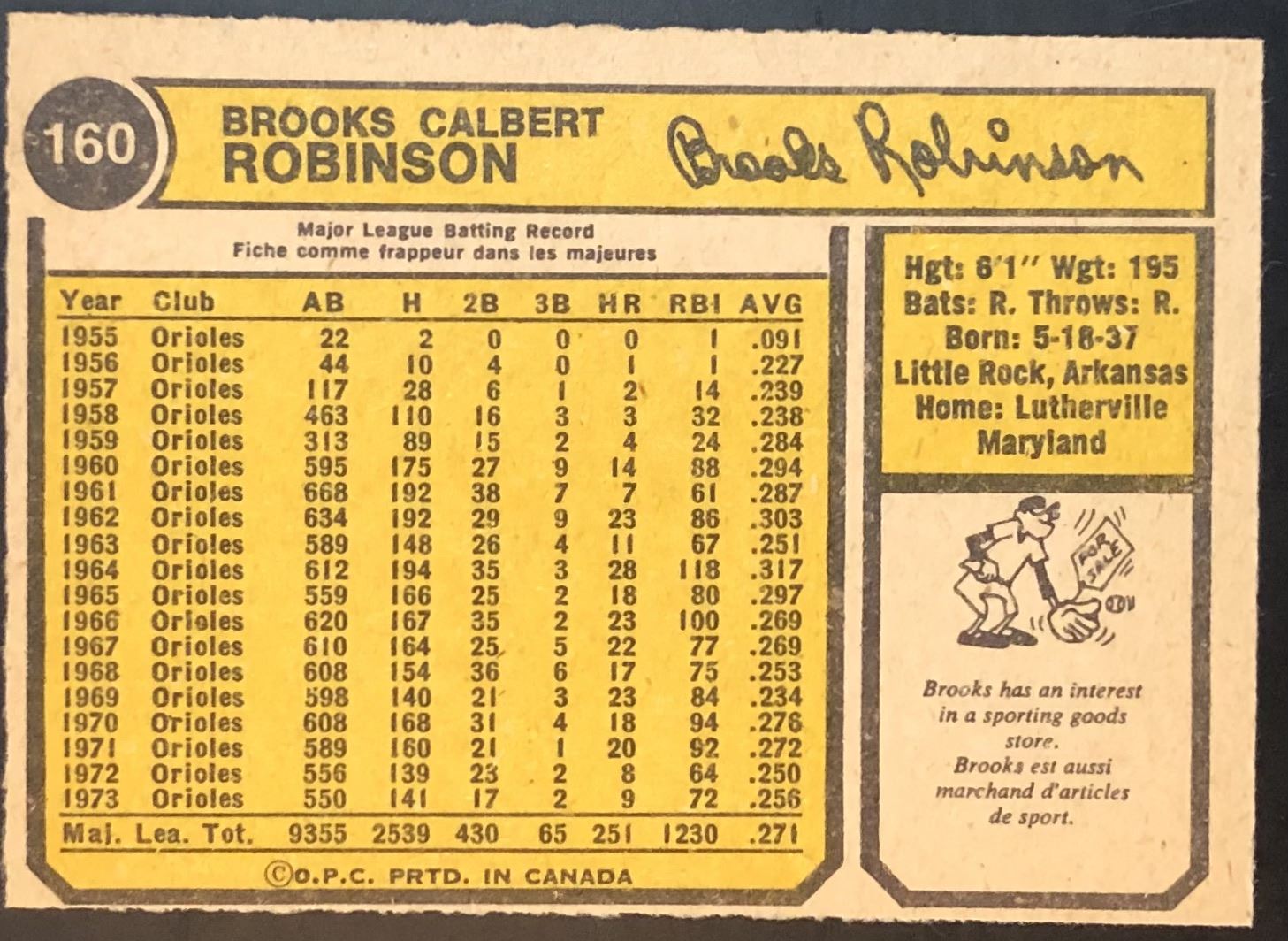 Card #160 MLB, baseball, vintage, OPC, hall of fame