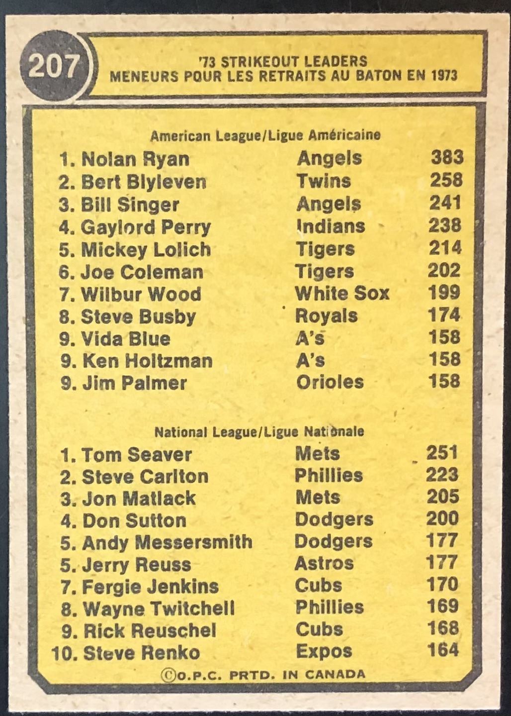 Card #207 OPC, vintage, MLB, baseball, hall of fame