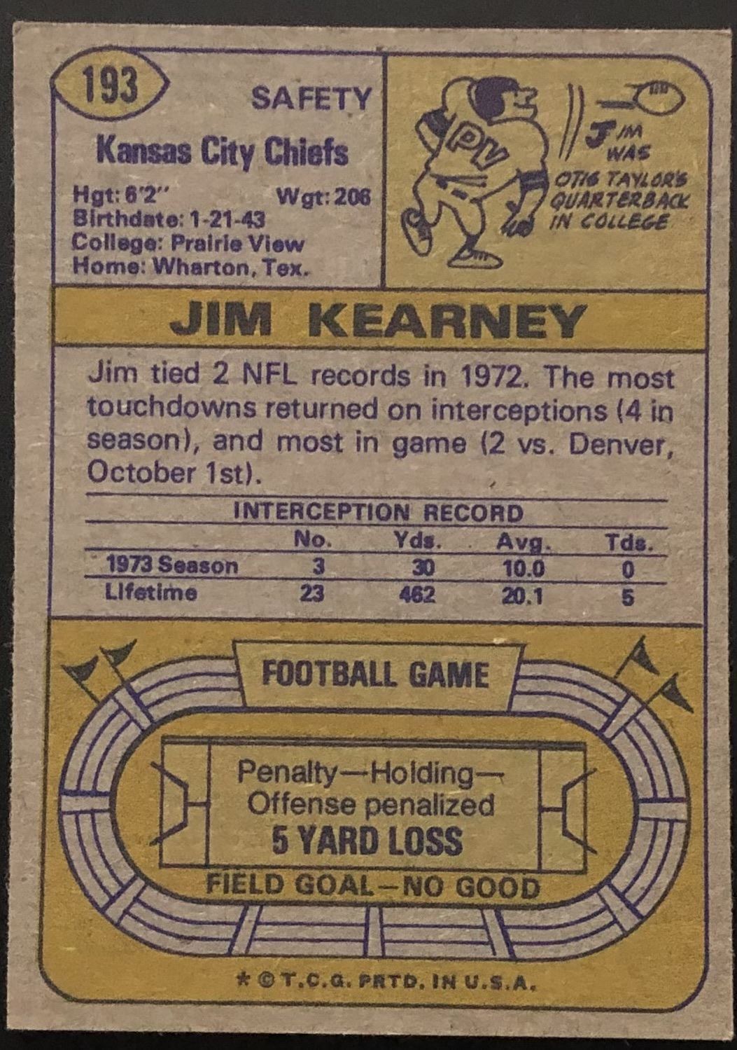Card #193 NFL, football, vintage