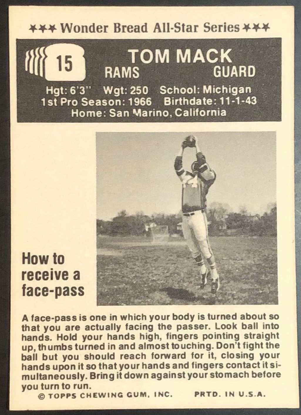 Card #15 NFL, football, vintage, regional, hall of fame