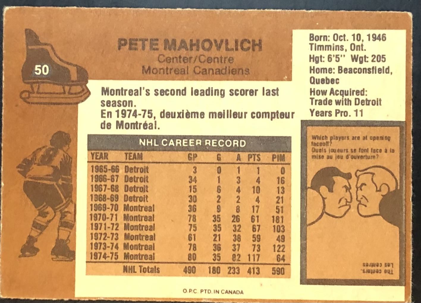 Card #50 NHL, hockey, vintage, OPC, hall of fame