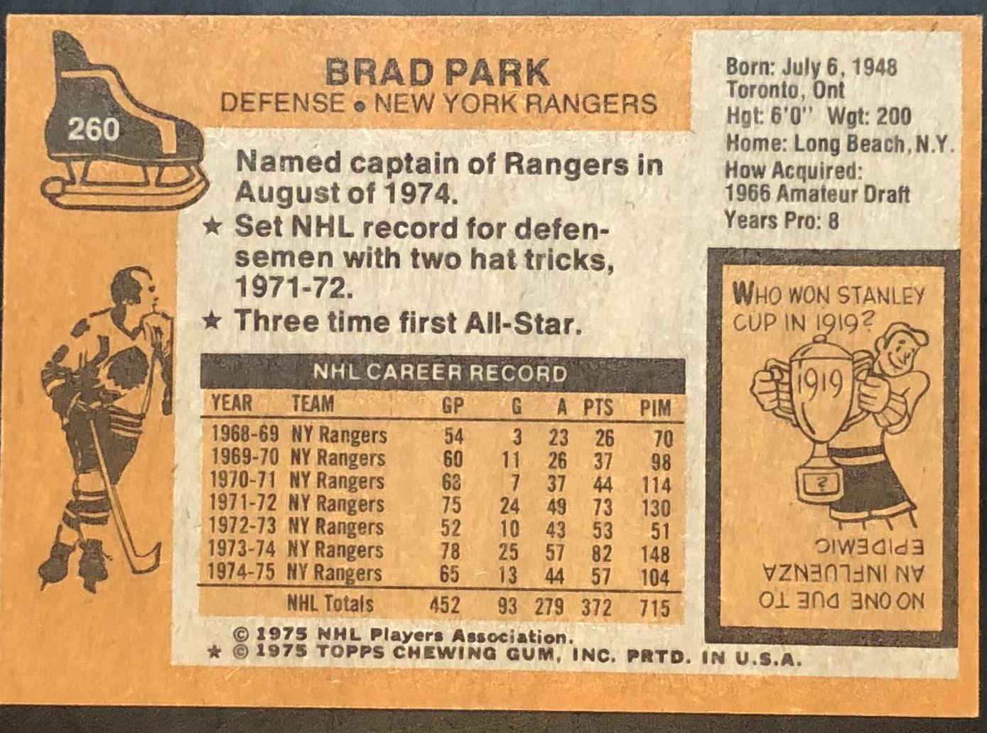 Card #260 NHL, hockey, vintage, hall of fame
