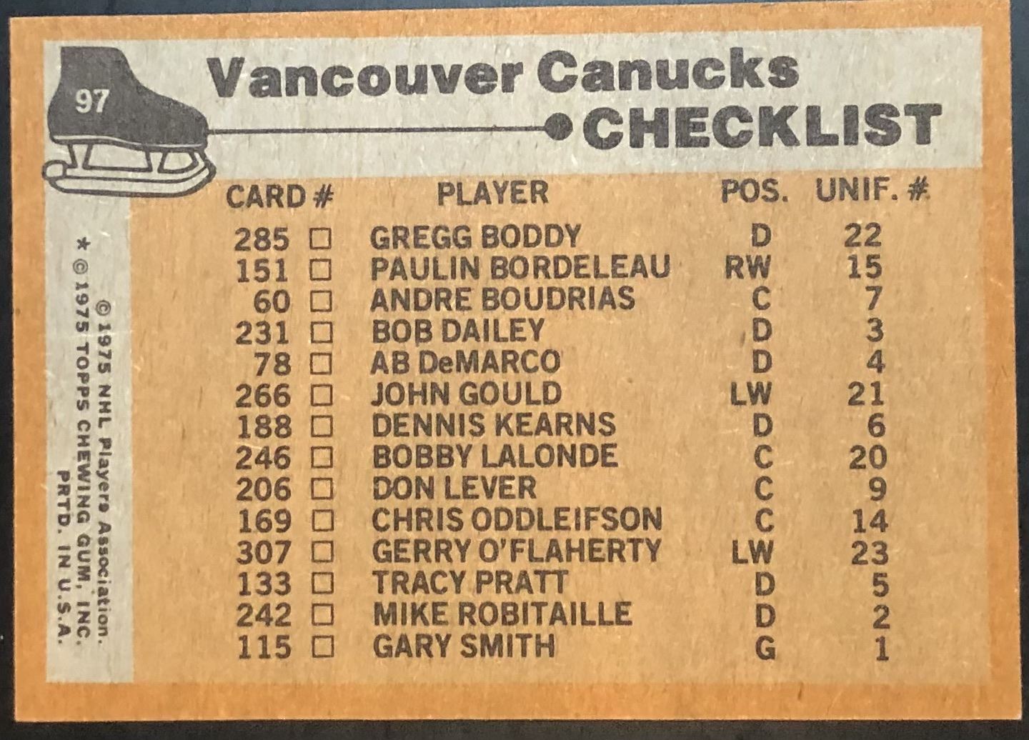 Card #97 NHL, hockey, vintage