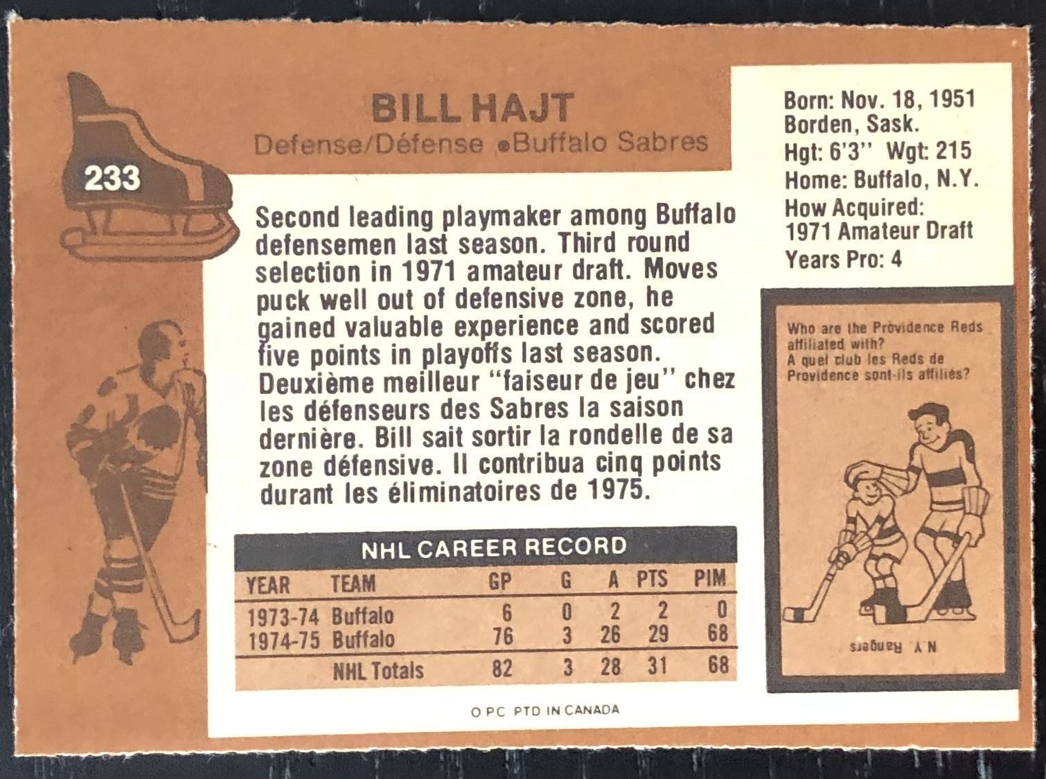 Card #233 NHL, hockey, vintage, OPC, rookie