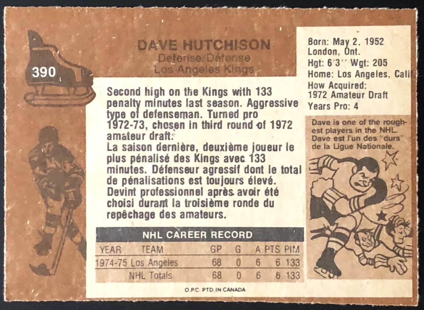 Card #390 hockey, NHL, vintage, OPC, rookie