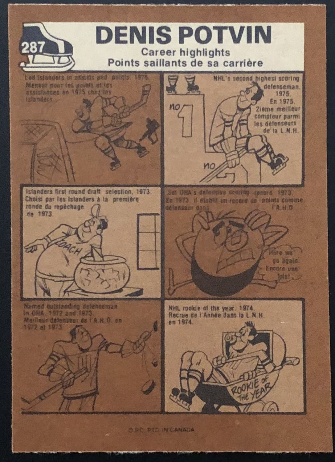Card #287 NHL, hockey, vintage, OPC, hall of fame