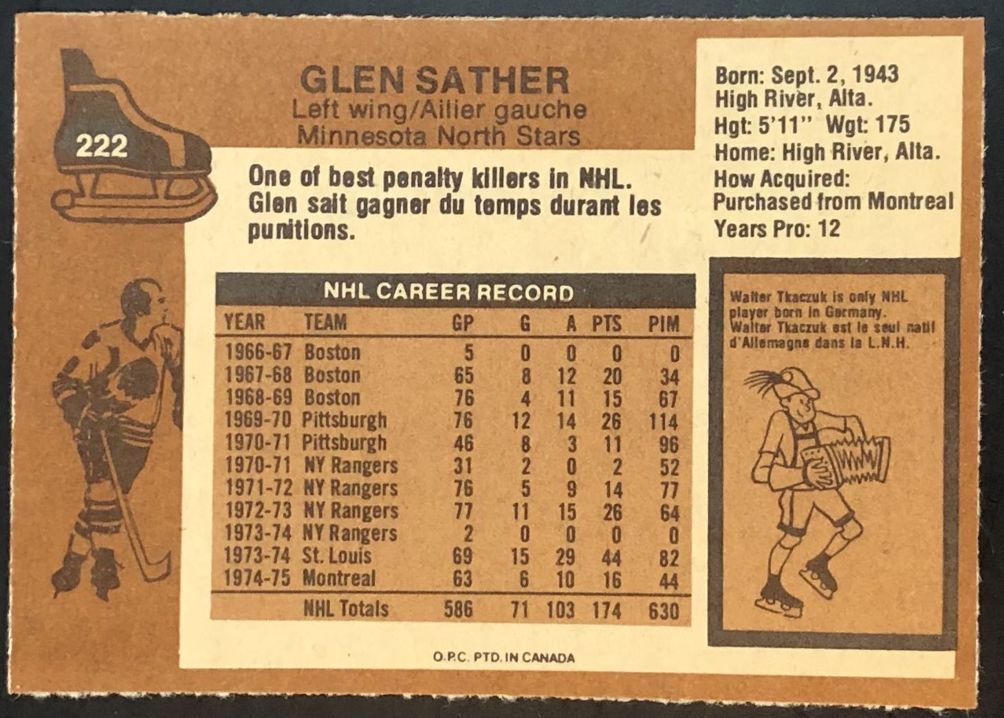 Card #222 hockey, NHL, vintage, OPC, hall of fame