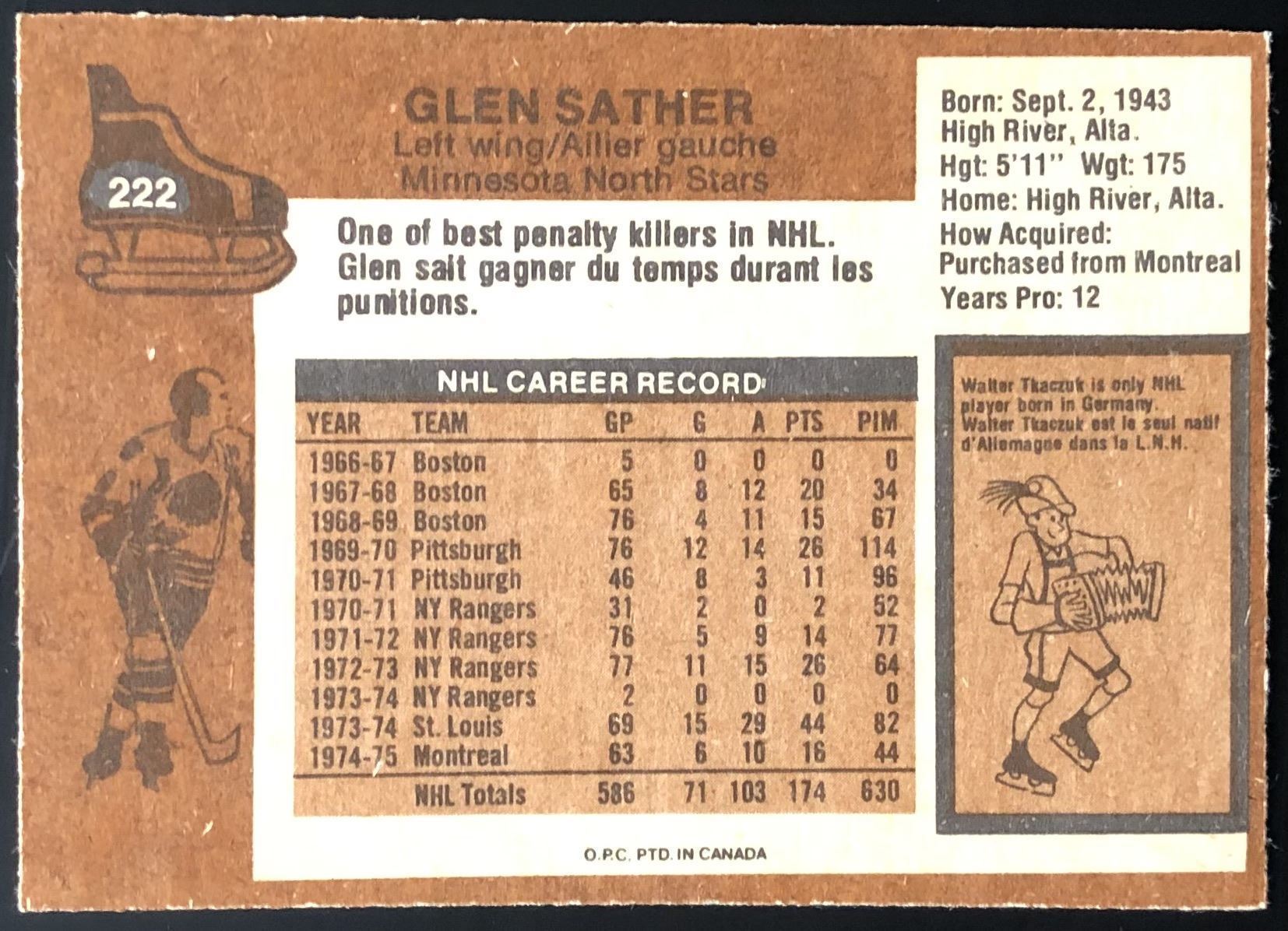 Card #222 NHL, hockey, vintage, OPC, hall of fame