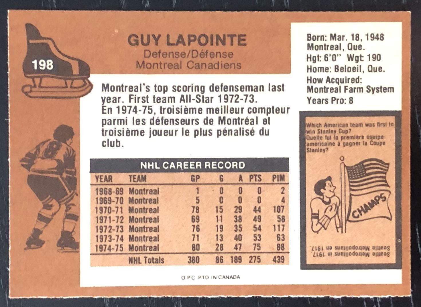 Card #198 NHL, hockey, vintage, OPC, hall of fame