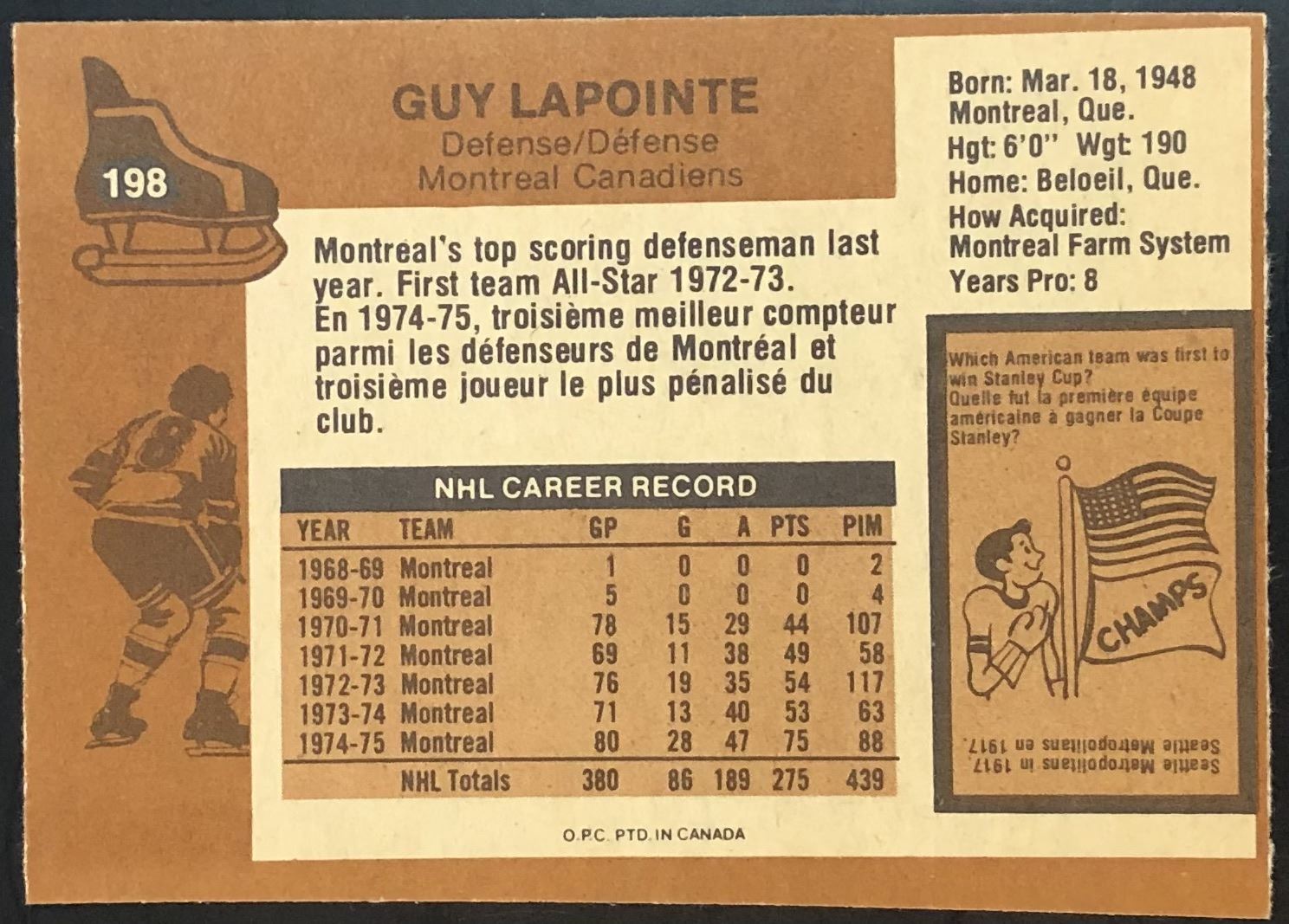 Card #198 hockey, NHL, vintage, OPC, hall of fame