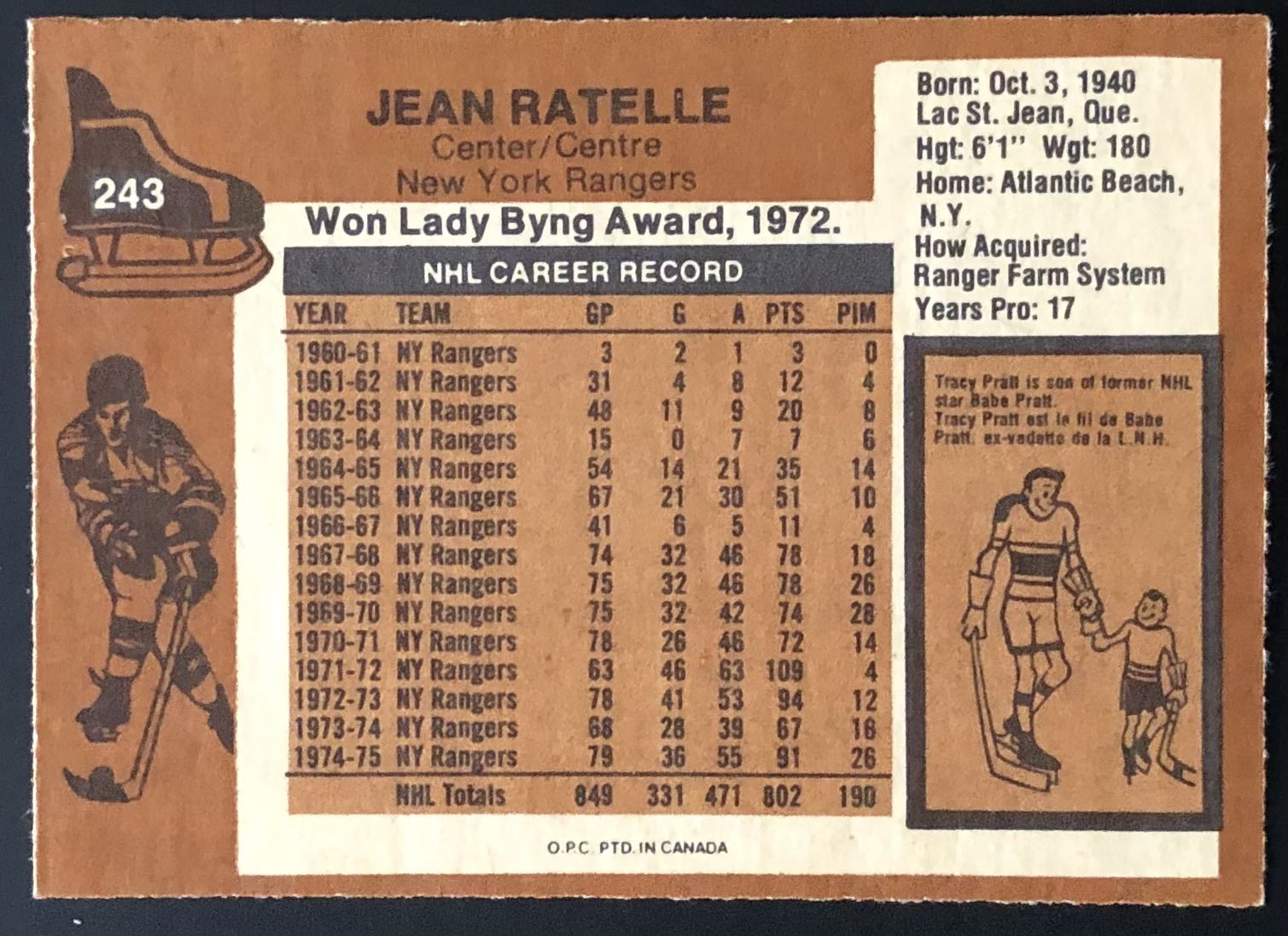 Card #243 NHL, hockey, vintage, OPC, hall of fame