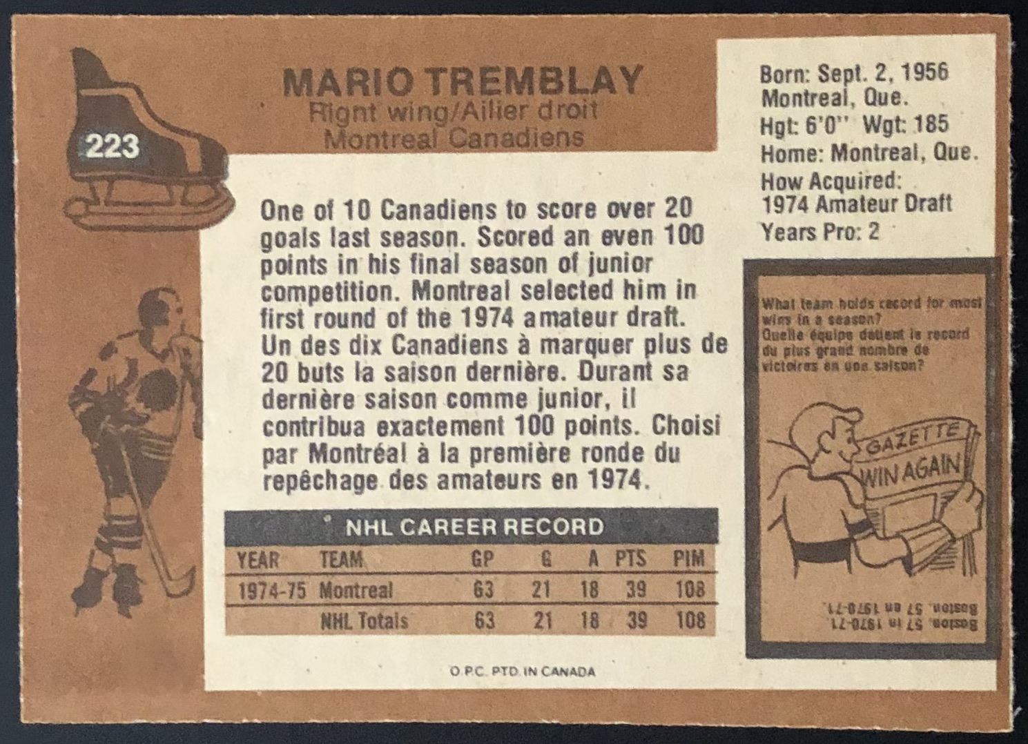Card #223 NHL, hockey, vintage, OPC, rookie