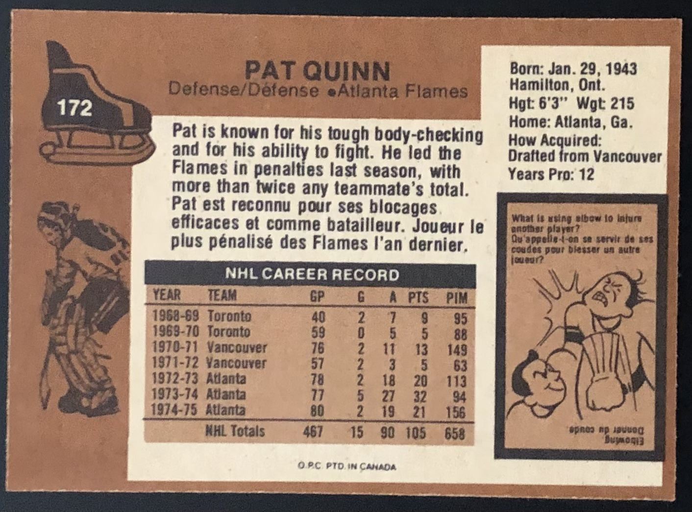 Card #172 NHL, hockey, vintage, OPC, hall of fame