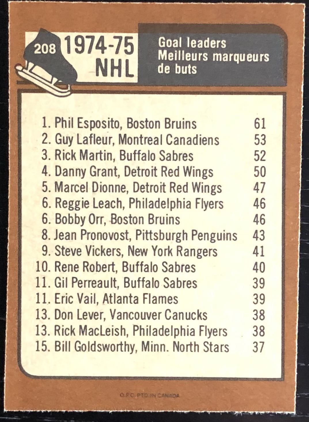 Card #208 NHL, hockey, vintage, OPC, hall of fame