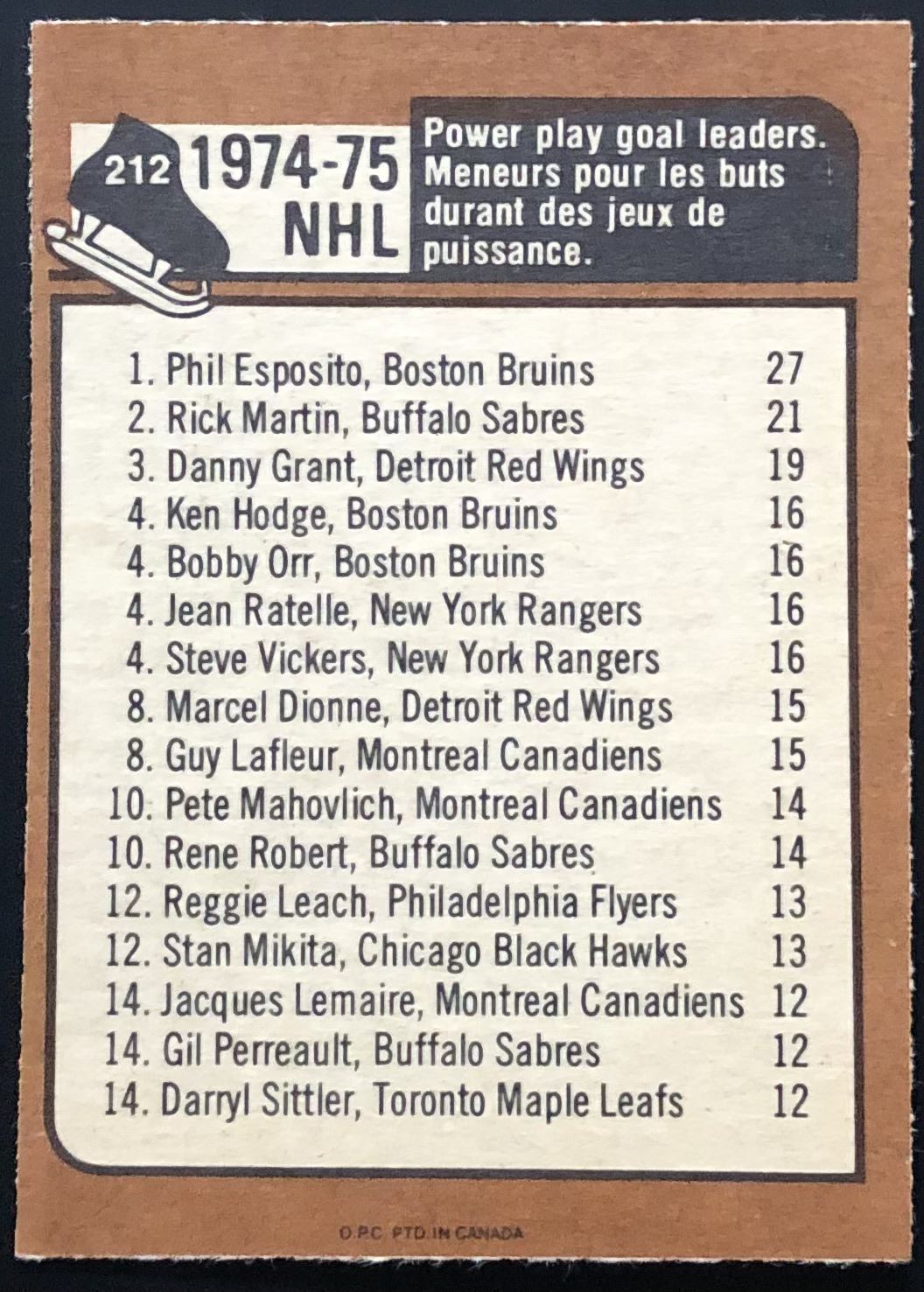 Card #212 NHL, hockey, OPC, vintage, hall of fame