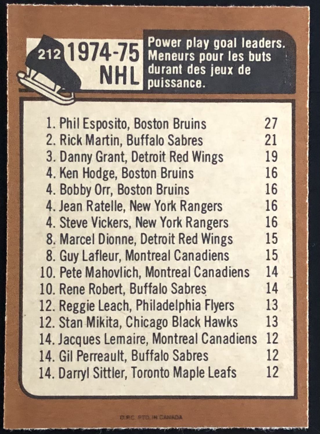 Card #212 NHL, hockey, vintage, OPC, hall of fame