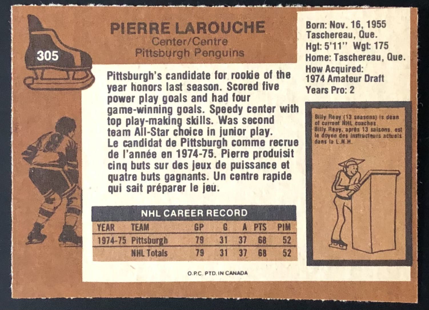 Card #305 NHL, hockey, OPC, vintage, rookie