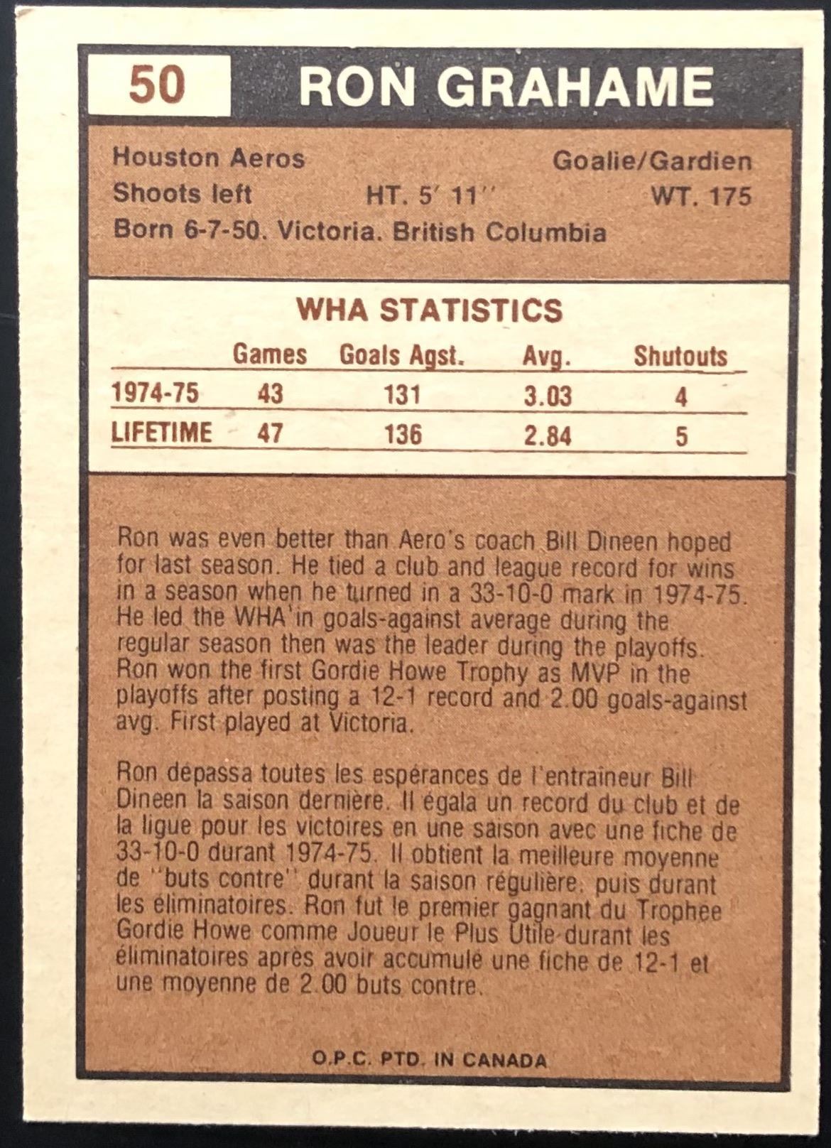 Card #50 WHA, hockey, vintage, OPC, rookie