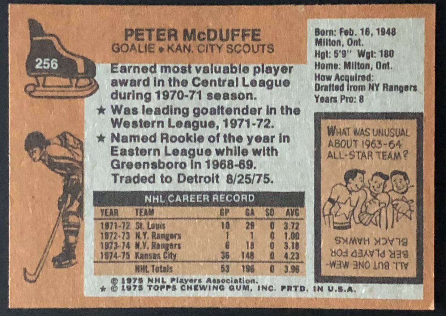 Card #256 NHL, hockey, vintage, rookie
