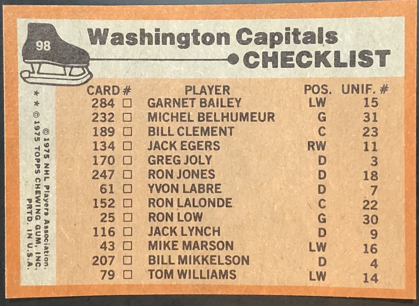 Card #98 vintage, NHL, hockey