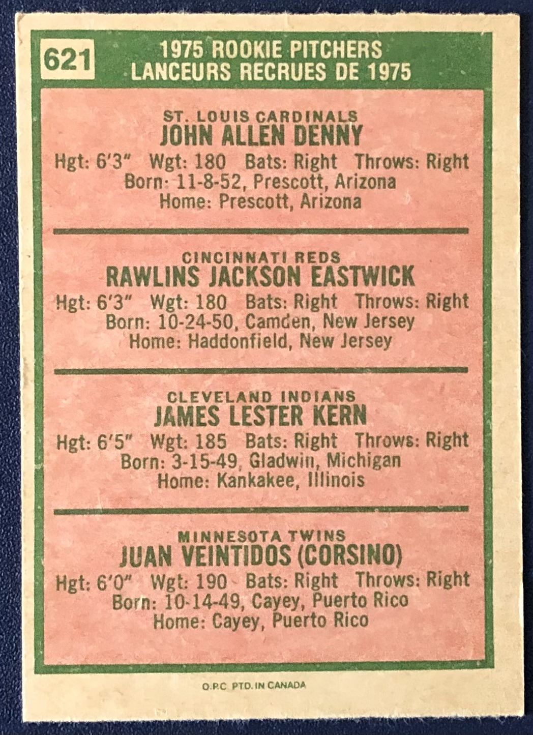 Card #621 OPC, heritage, MLB, baseball, rookie