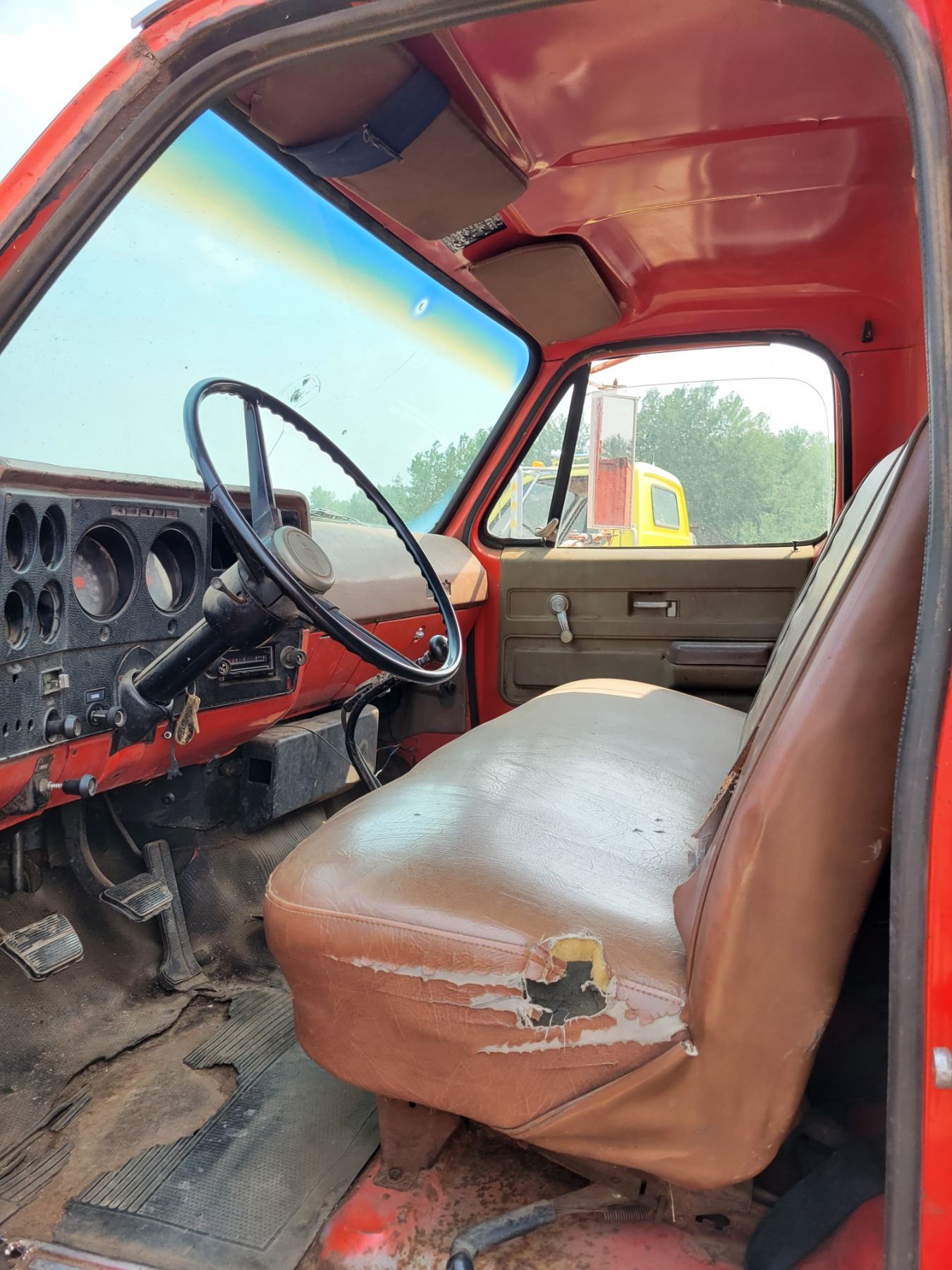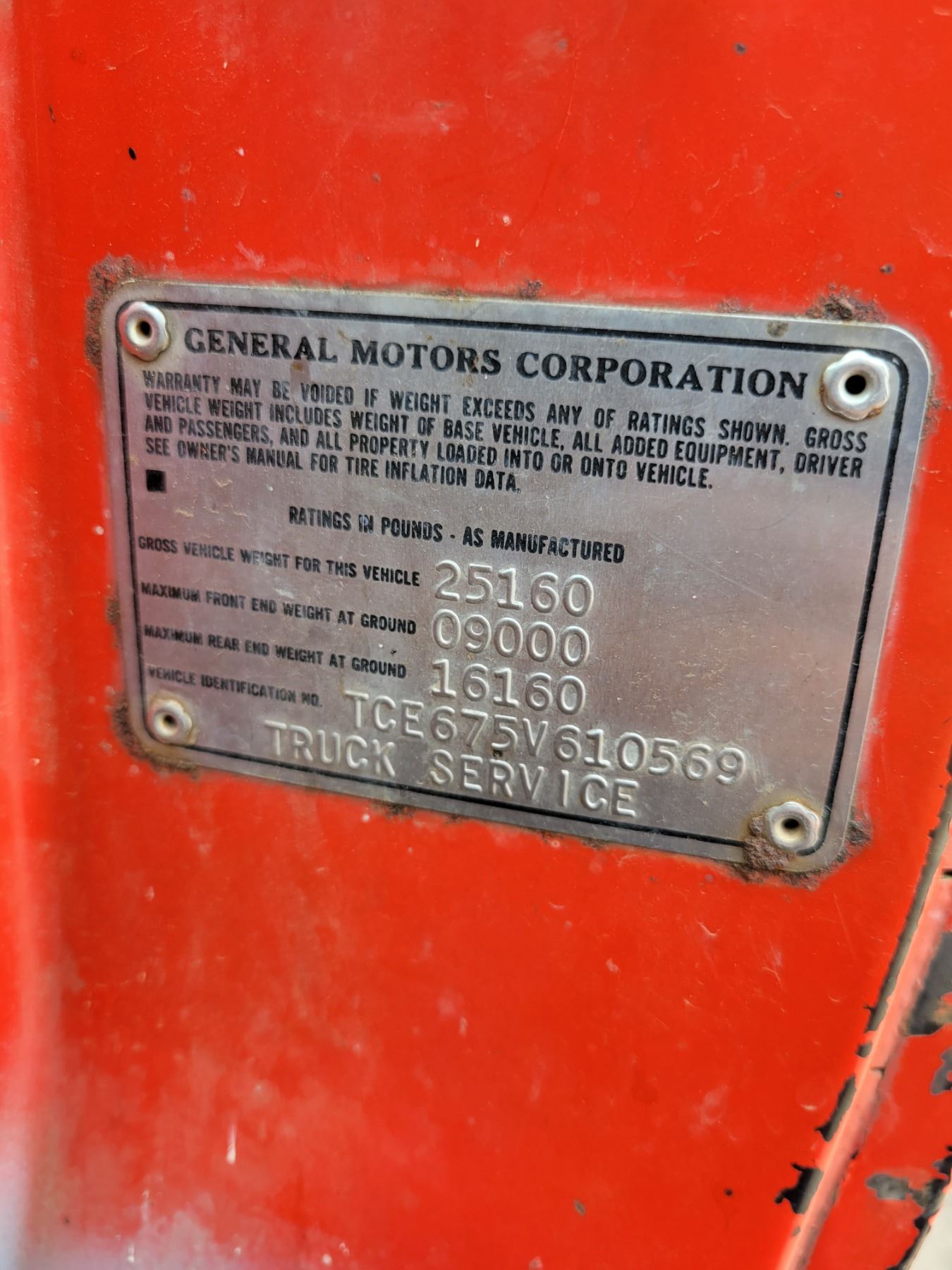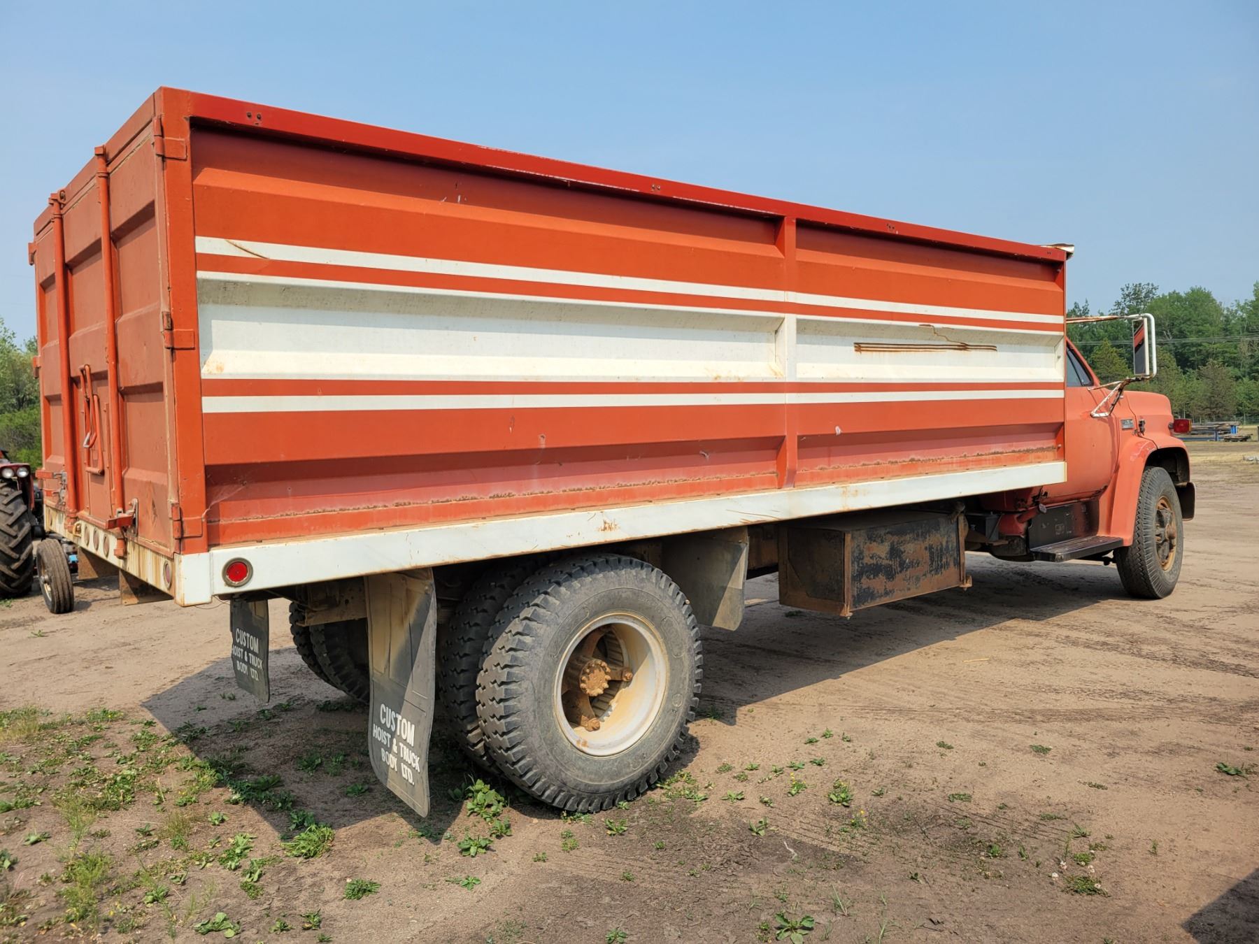 1975 Red GMC 6500 Grain truck, V8, 65,866 Km, 10.00-20 Rubbers, 18' x 8'4" x 54"H Box, SN. TCE675V610569, Body rust