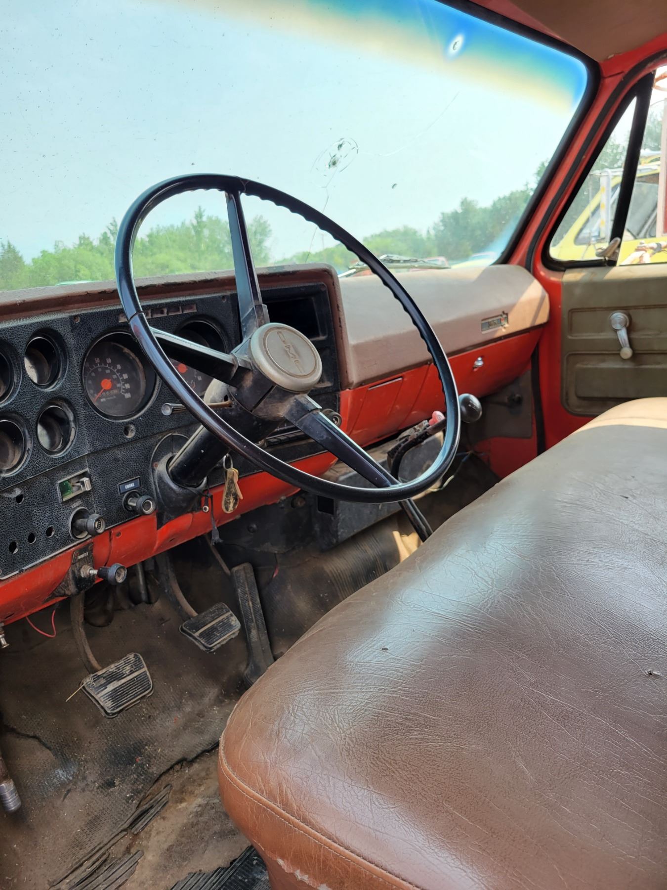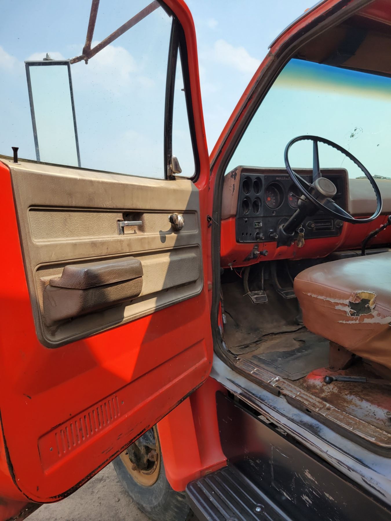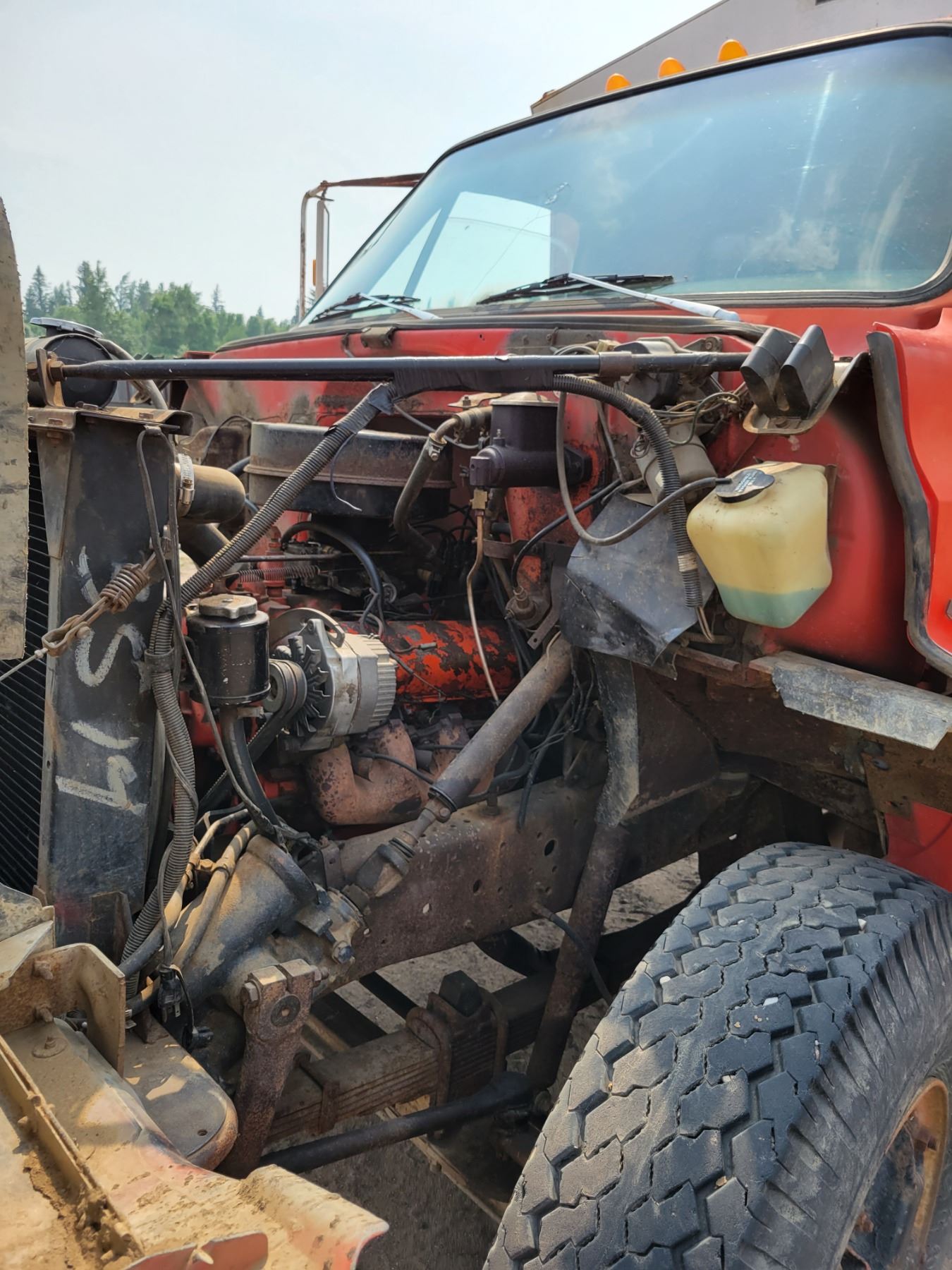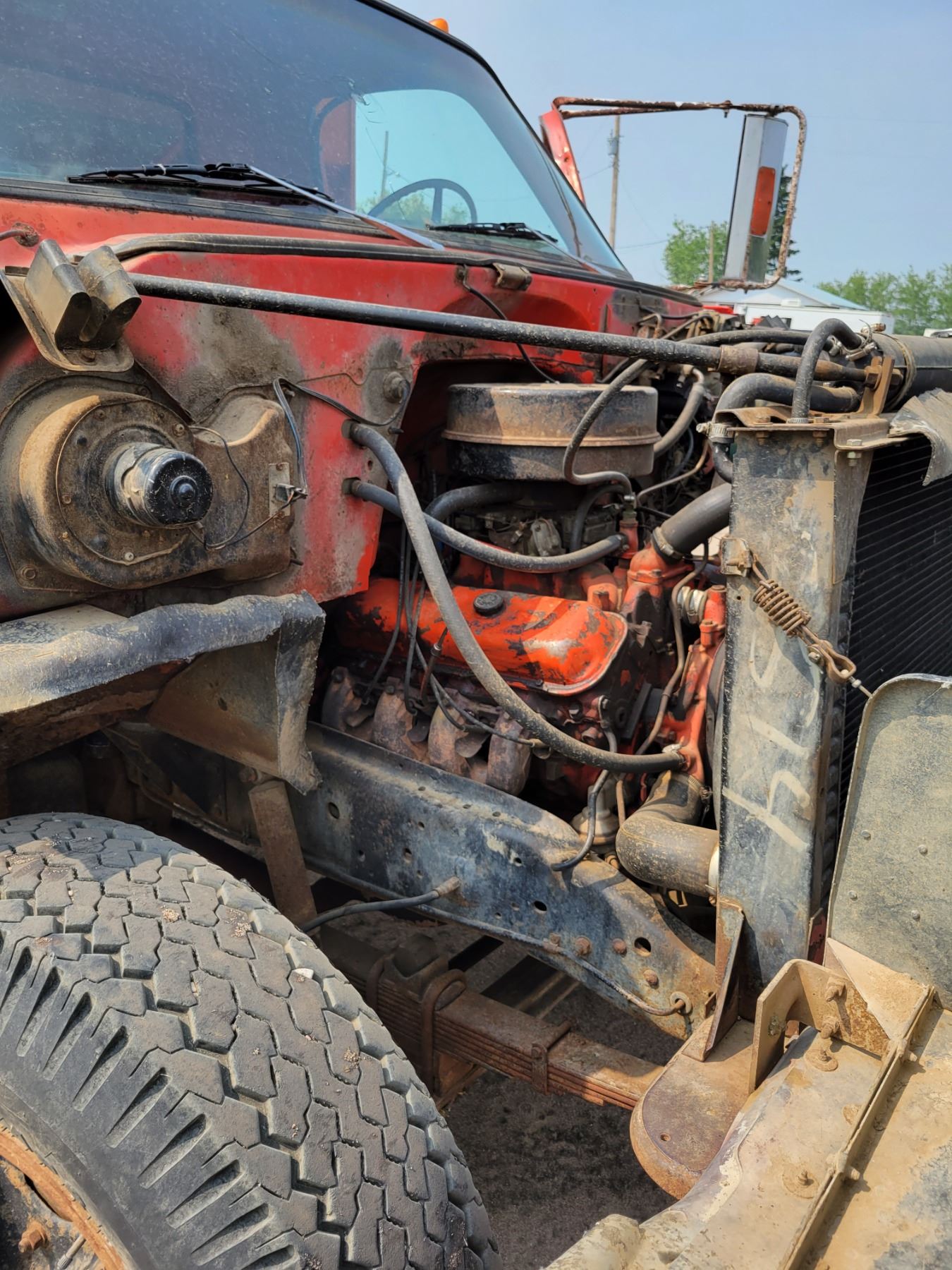 1975 Red GMC 6500 Grain truck, V8, 65,866 Km, 10.00-20 Rubbers, 18' x 8'4" x 54"H Box, SN. TCE675V610569, Body rust