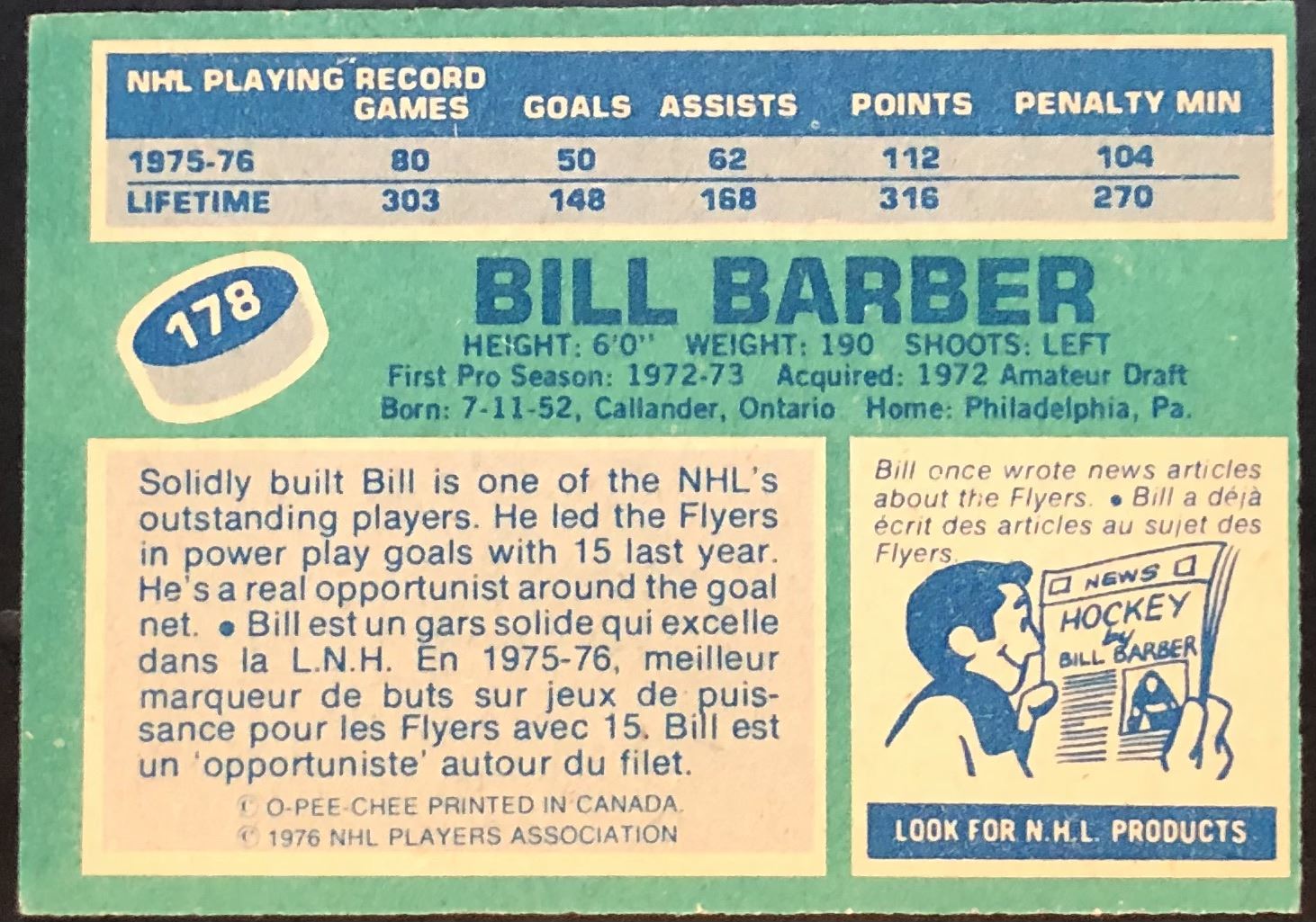 Card #178 NHL, hockey, vintage, OPC, hall of fame