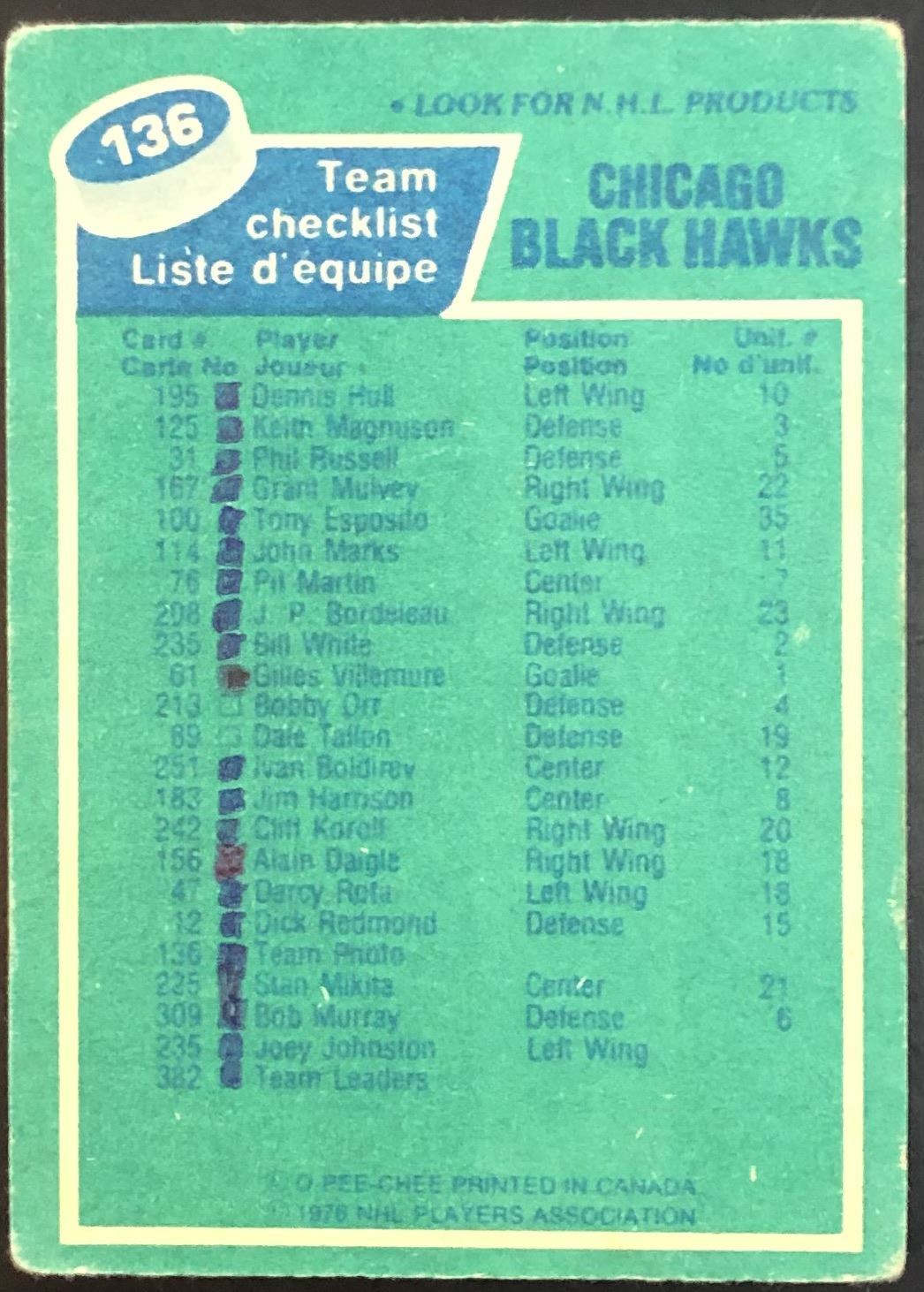 Card #136, ink on back NHL, hockey, vintage, OPC