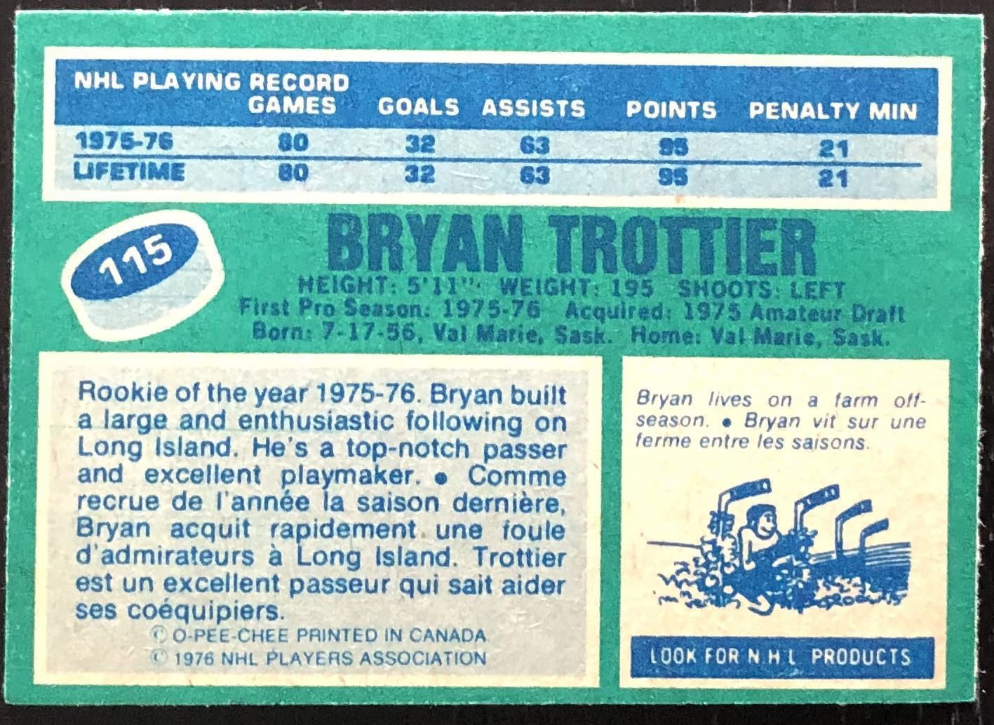 Card #115 NHL, hockey, vintage, hall of fame, OPC, rookie
