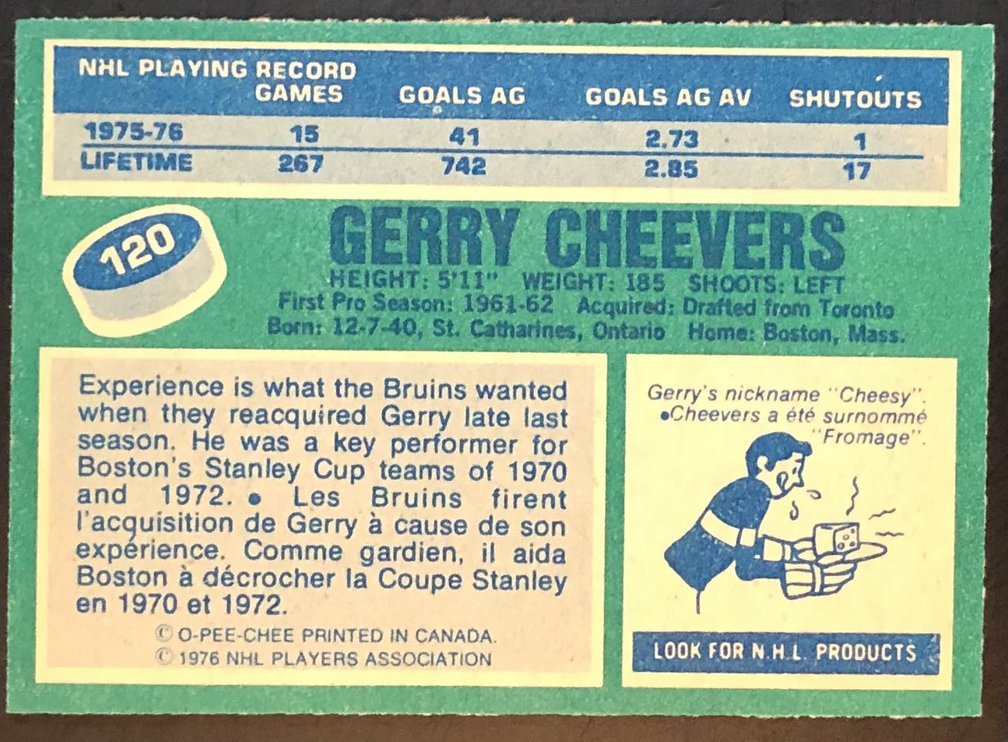 Card #120 NHL, hockey, OPC, vintage, hall of fame