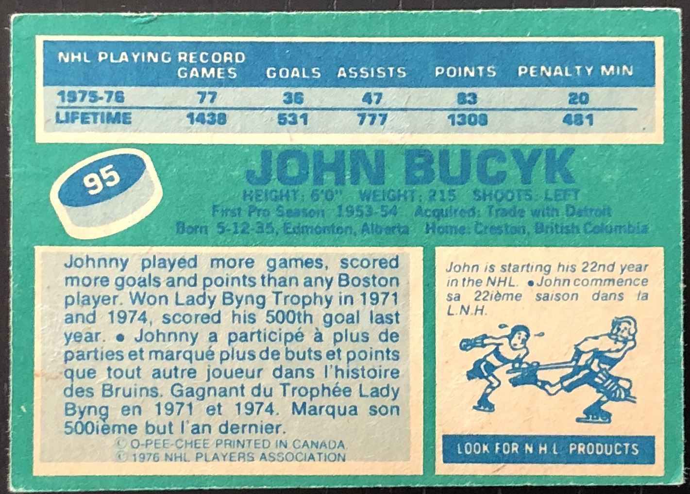 Card #95 hockey, NHL, vintage, OPC, hall of fame