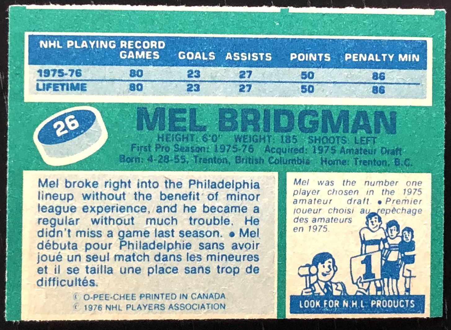 Card #26 NHL, hockey, vintage, OPC, rookie