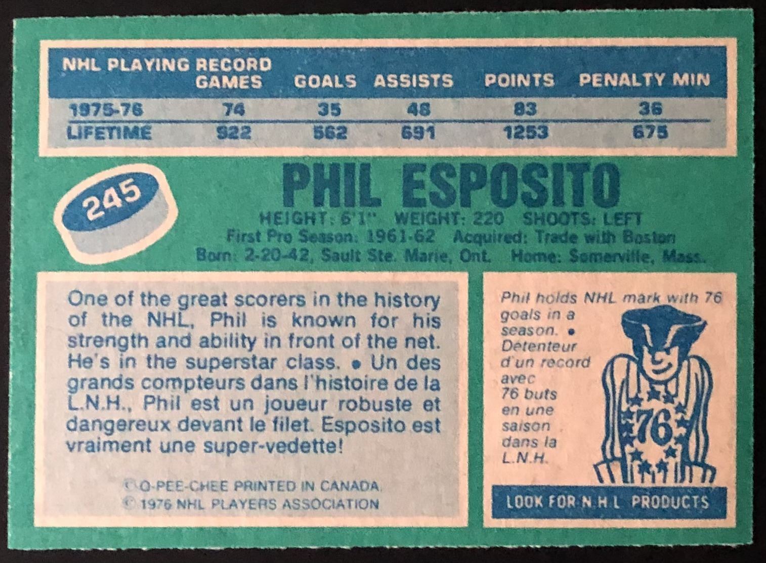 Card #245 NHL, hockey, OPC, vintage, hall of fame