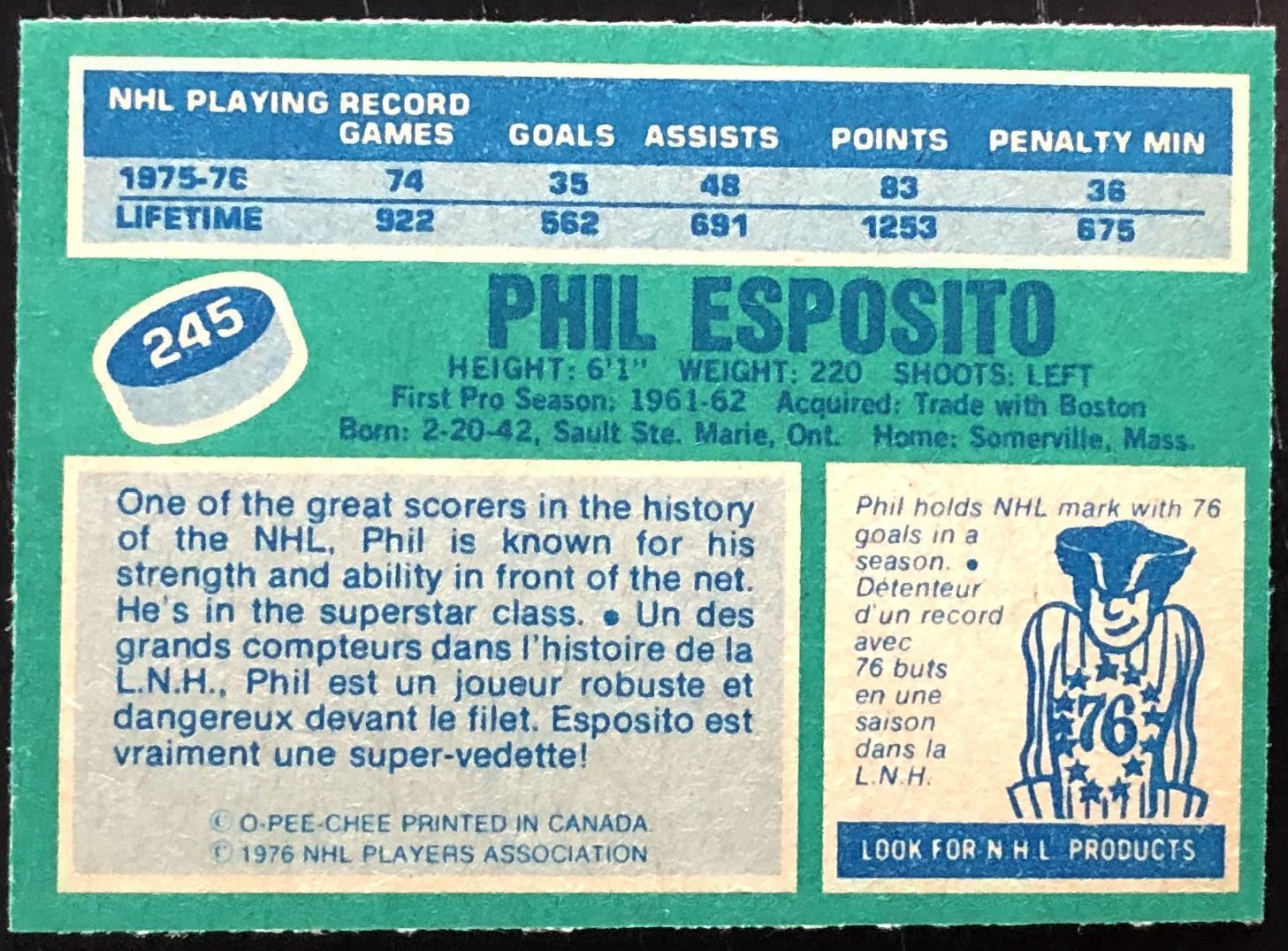 Card #245 NHL, hockey, vintage, OPC, hall of fame