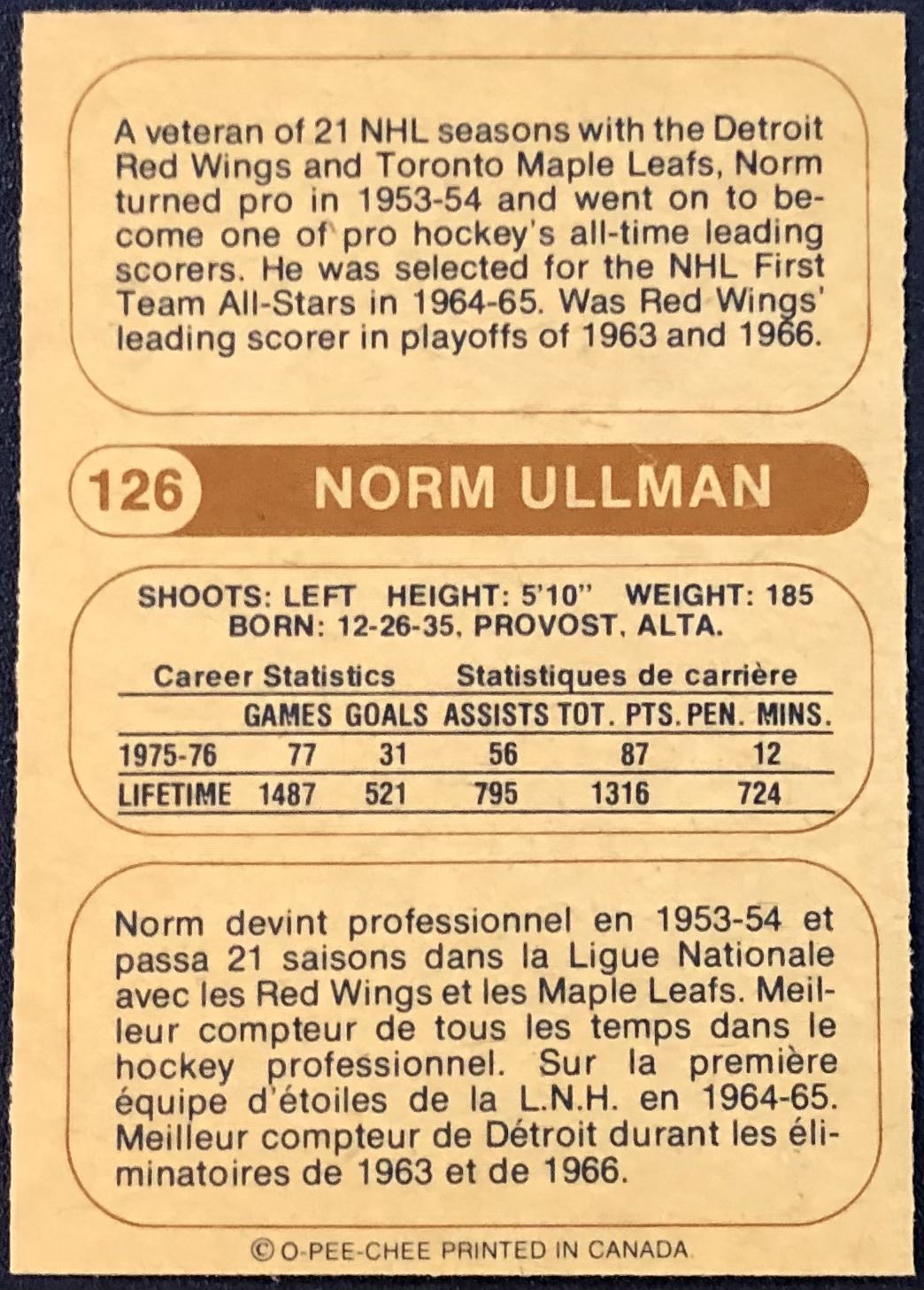 Card #126 vintage, WHA, hockey, OPC, hall of fame