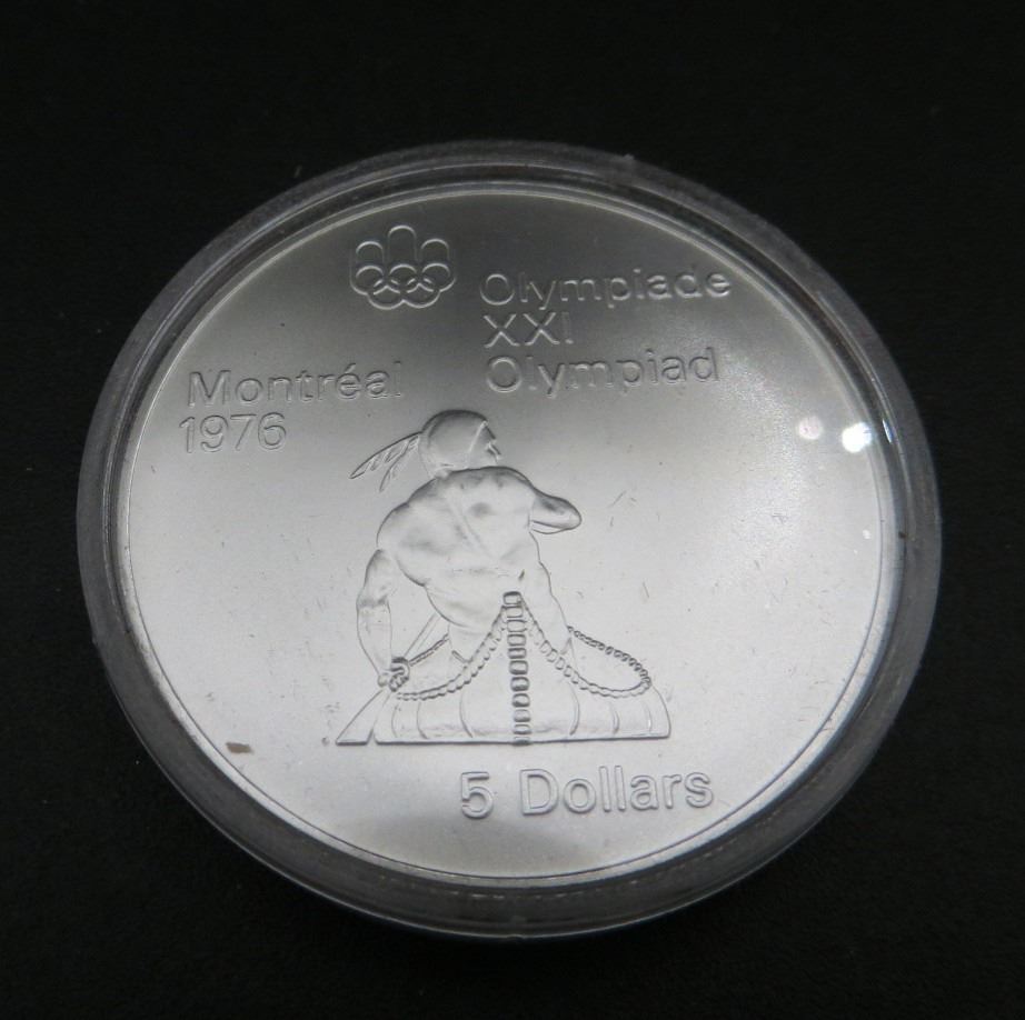 1976 Canadian Silver $5 Dollars Coin Montreal XXI Olympic Games (0.7227 oz of 925 Fine Silver)