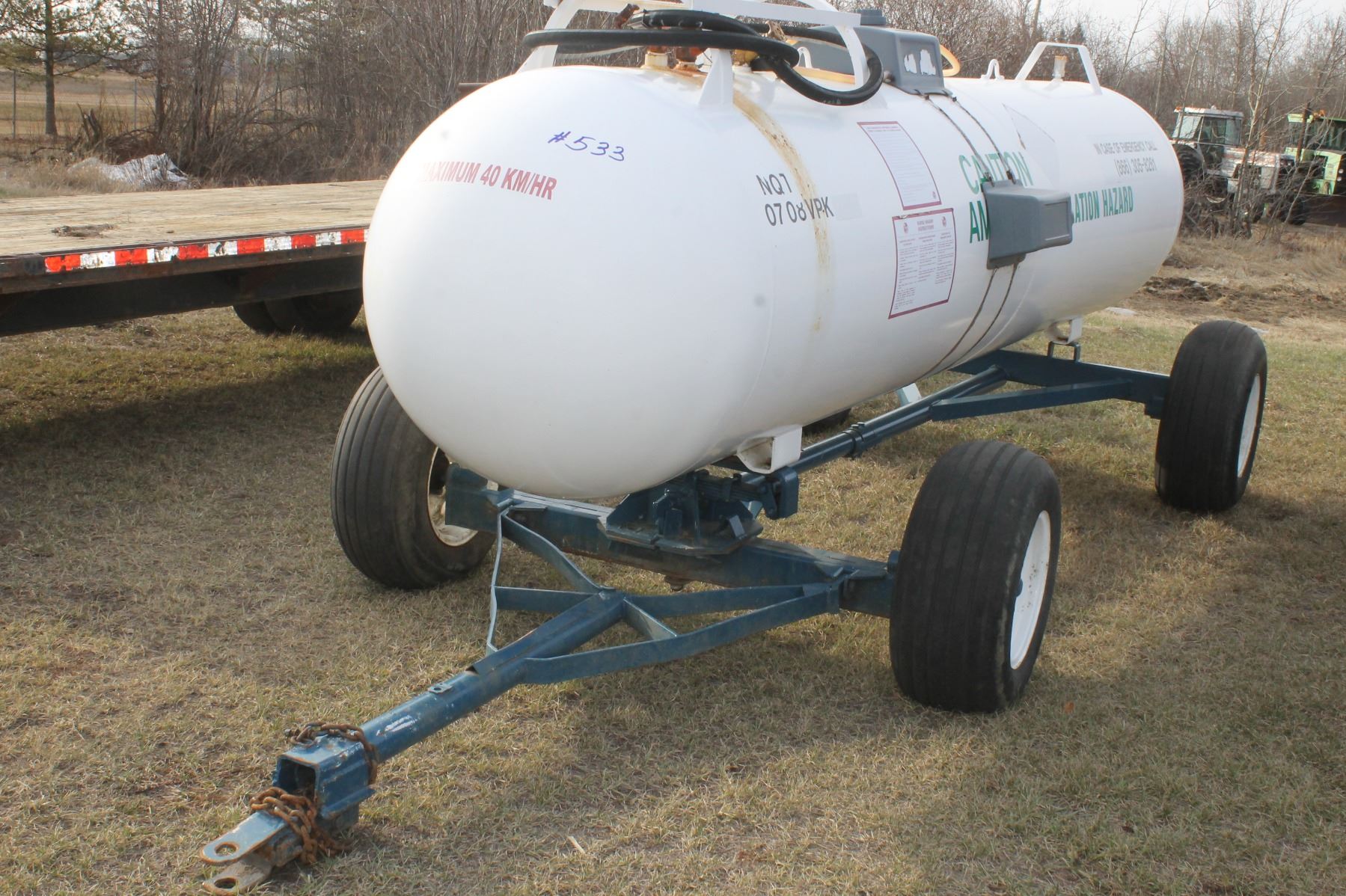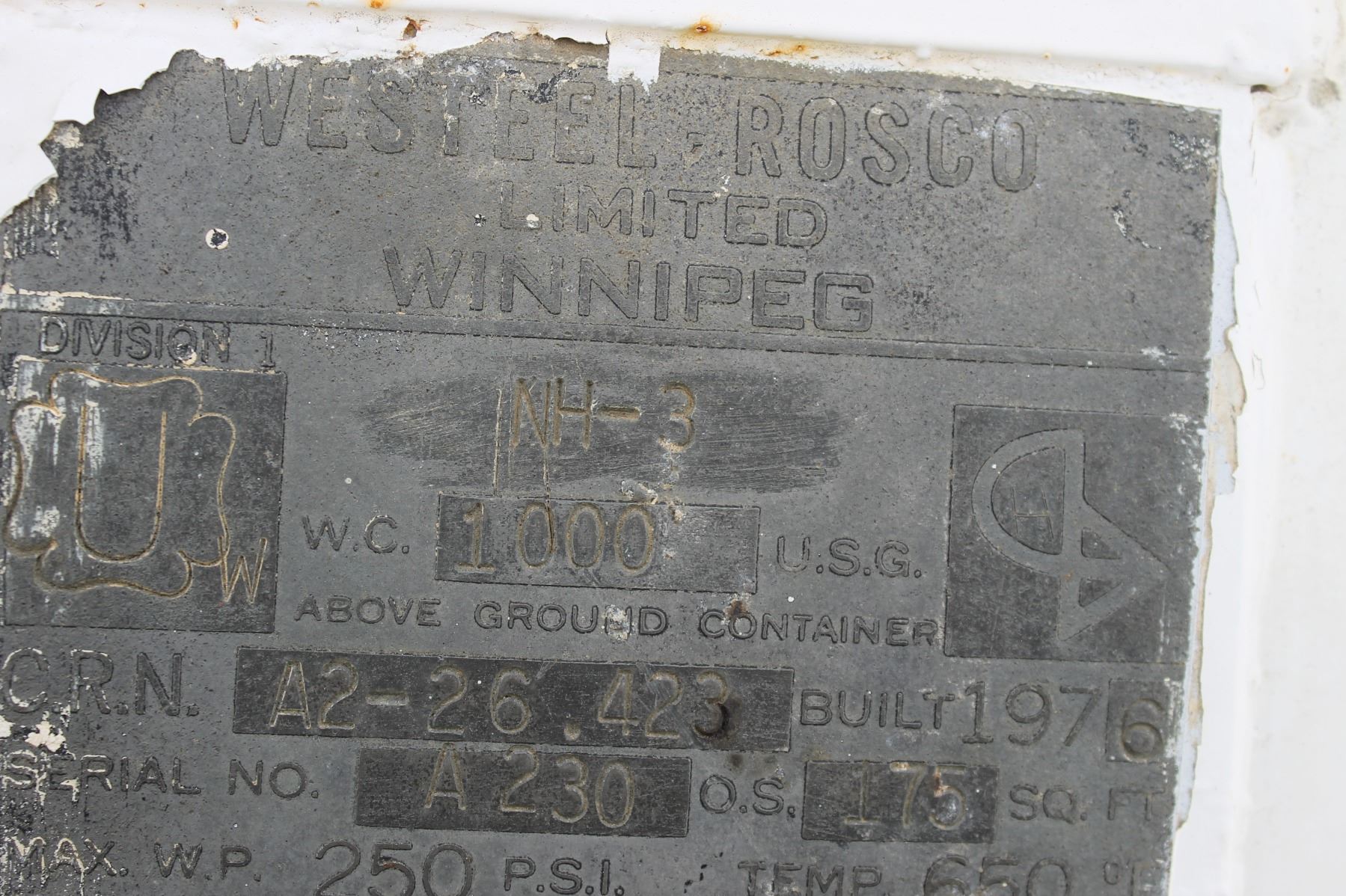 1976 Westeel-Rosco 1000 gal Anhydrous Ammonia Tank, A230, 250 lb Valve c/w Heavy Duty Wagon