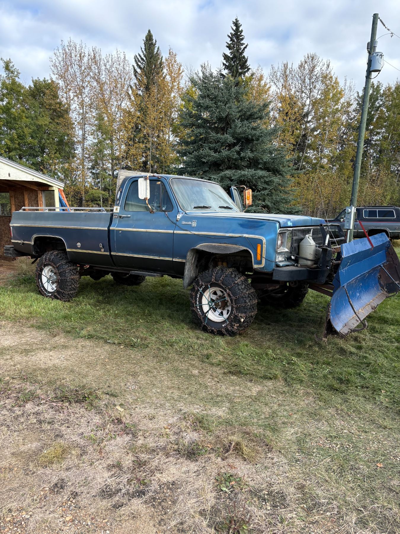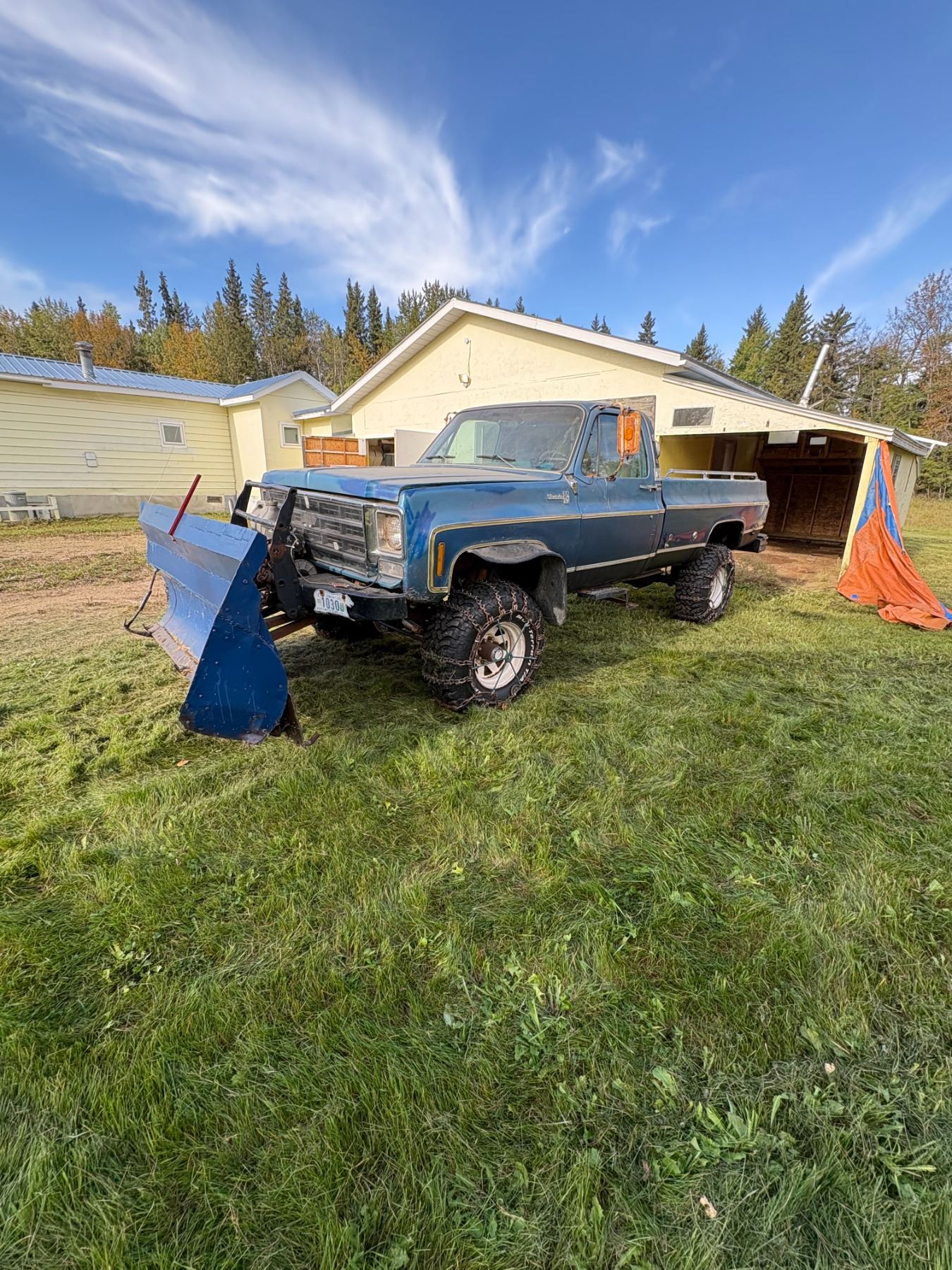 1977 Chev Silverado 4x4, V8 Auto, Nice c/w blade, showing 90,891 km, runs & moves (needs a boost) SN. CKR2471177259